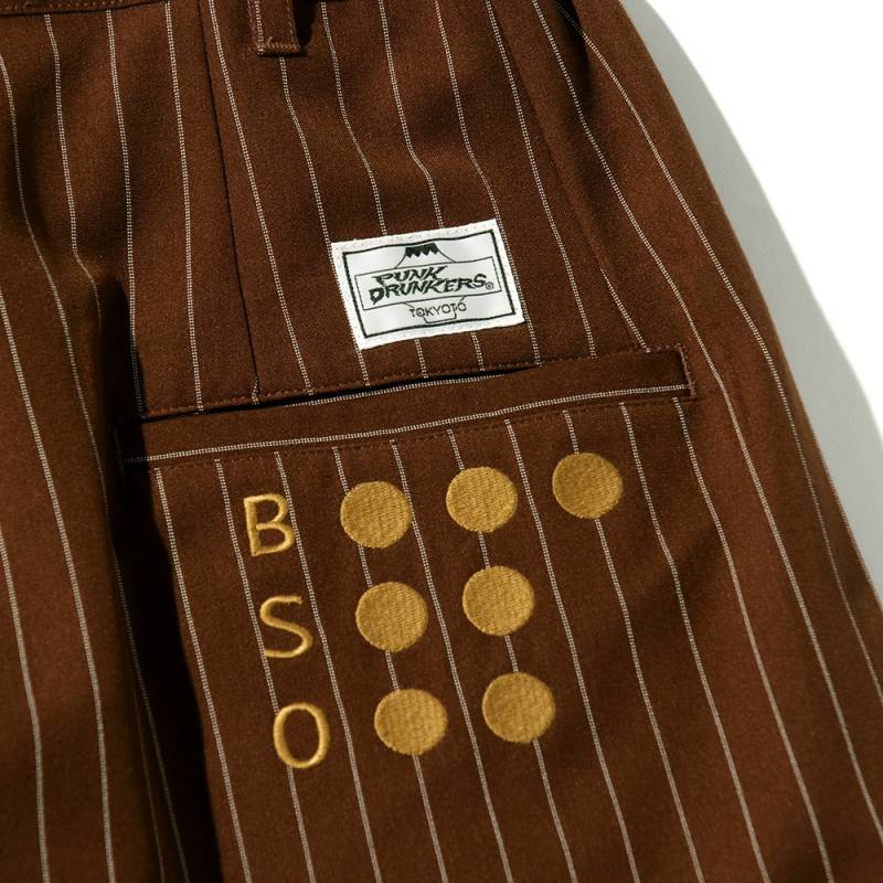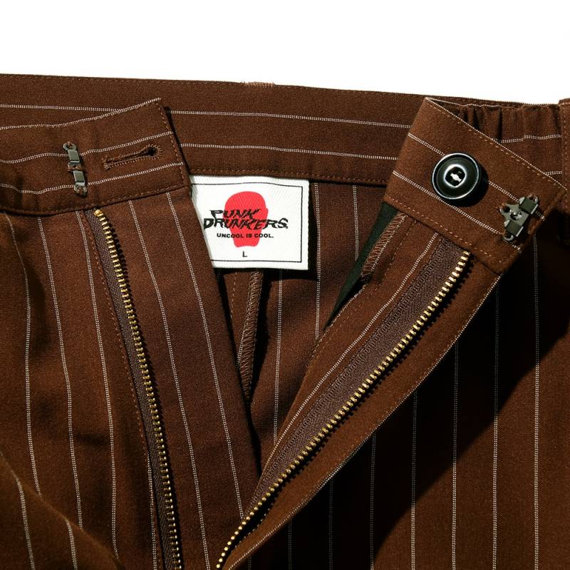 【予約商品】PUNK DRUNKERS (パンク・ドランカーズ) ストライプSLAXパンツ - BROWN