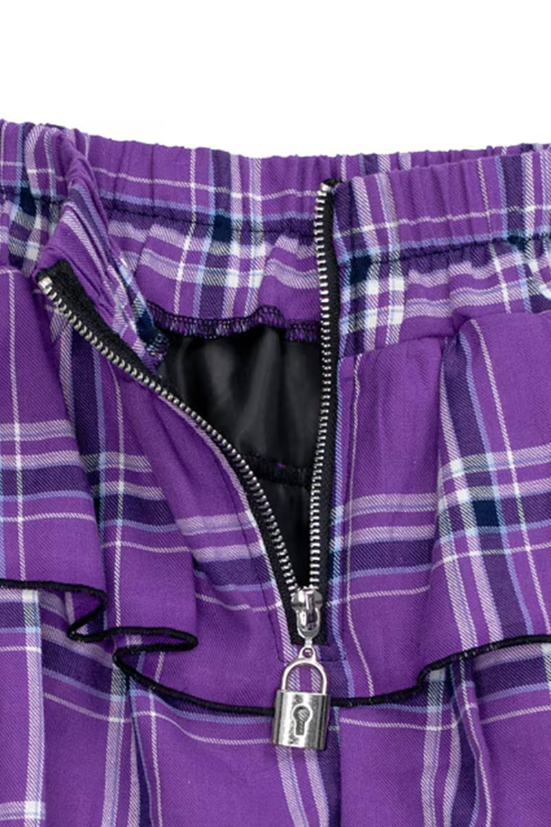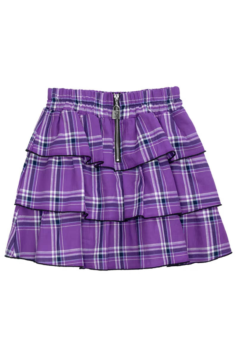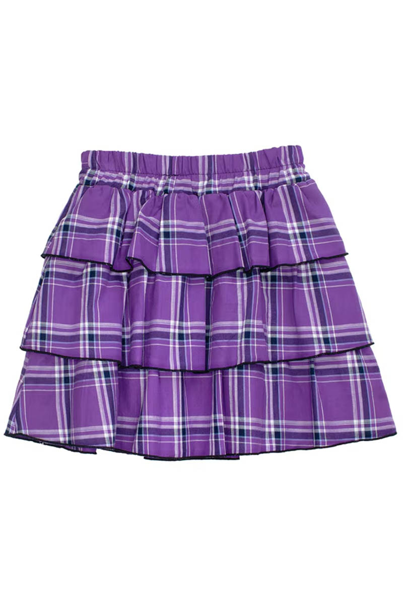 LISTEN FLAVOR (リッスン・フレーバー) センター・ジップ・ティアード・スカート - Purple Check