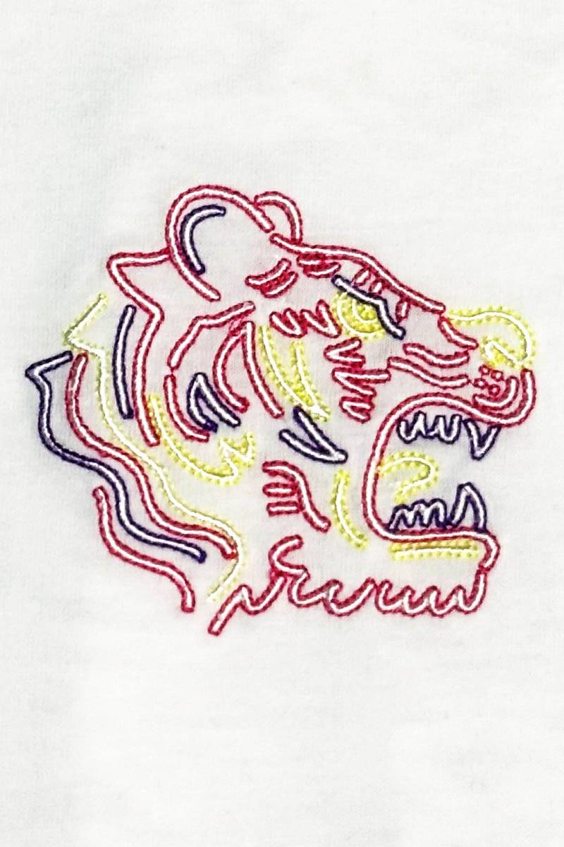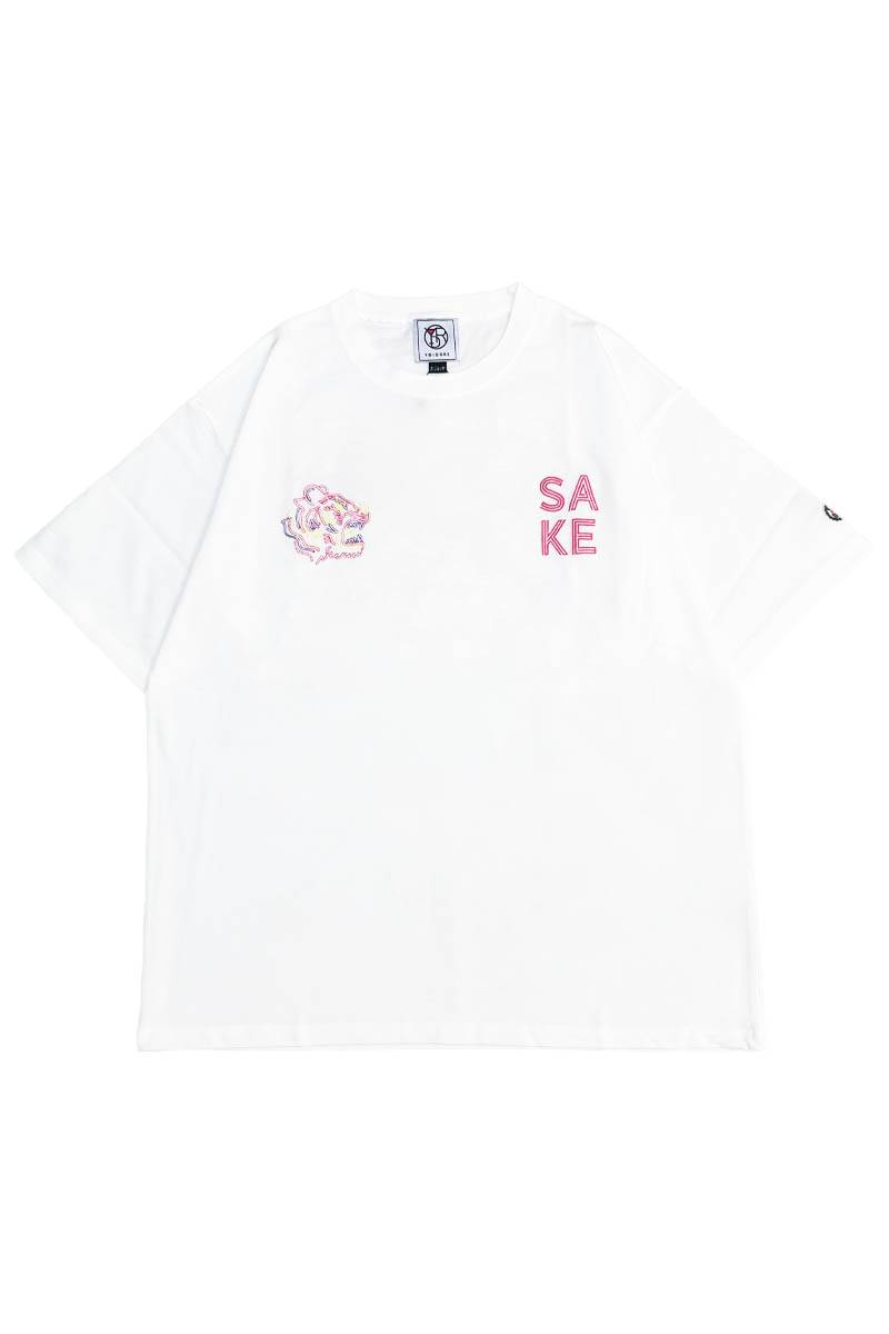 フロントは胸元の「SAKE」とタイガーのワン・ポイントで、シンプルながらもエッジの効いた仕上がりに。飲み会やイベントで主役になれること間違いなし。これを着て、今夜も最高の乾杯を。
