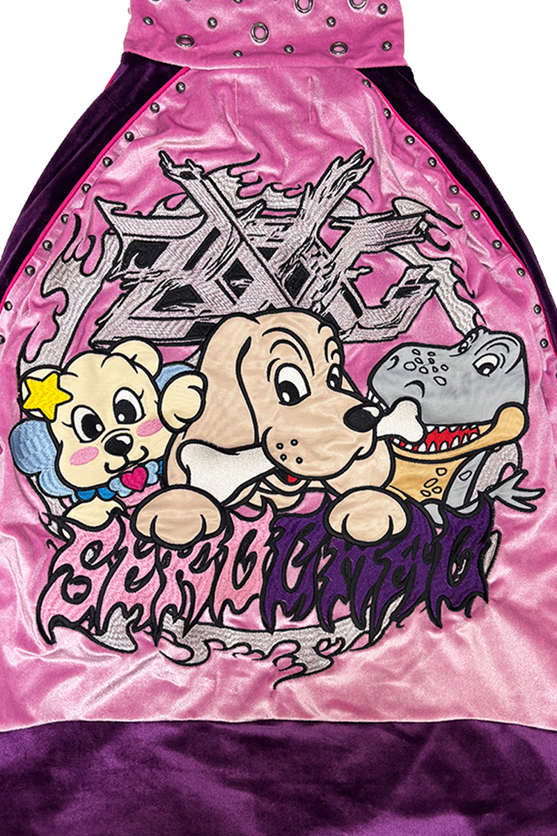 GALFYおなじみの犬、大森靖子おなじみキャラのナナちゃん、荼緒あいみの好きな恐竜が仲良く並ぶデザインをメインに"ZOCX"のロゴと本コラボ限定の"せこちゃお"のオリジナルロゴを配置。