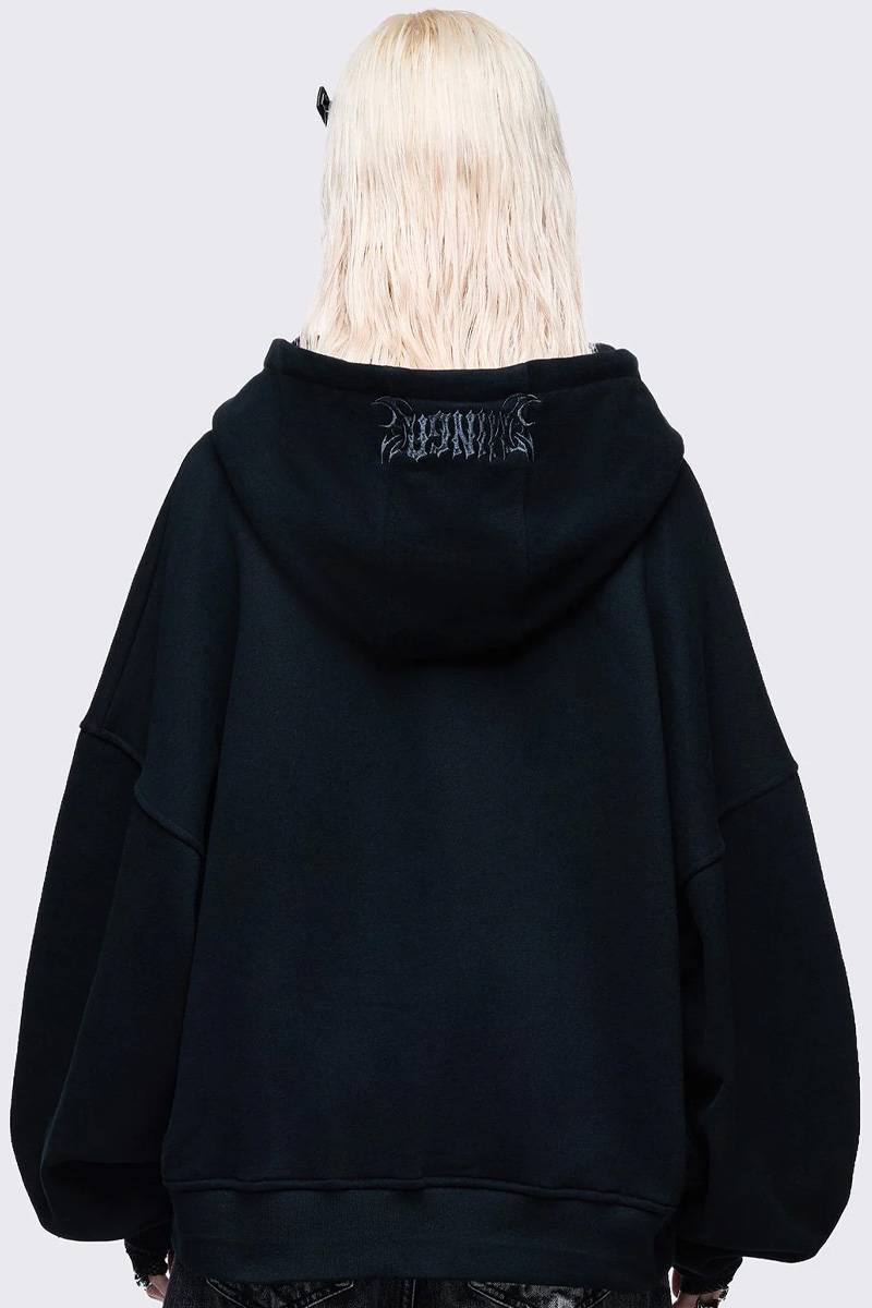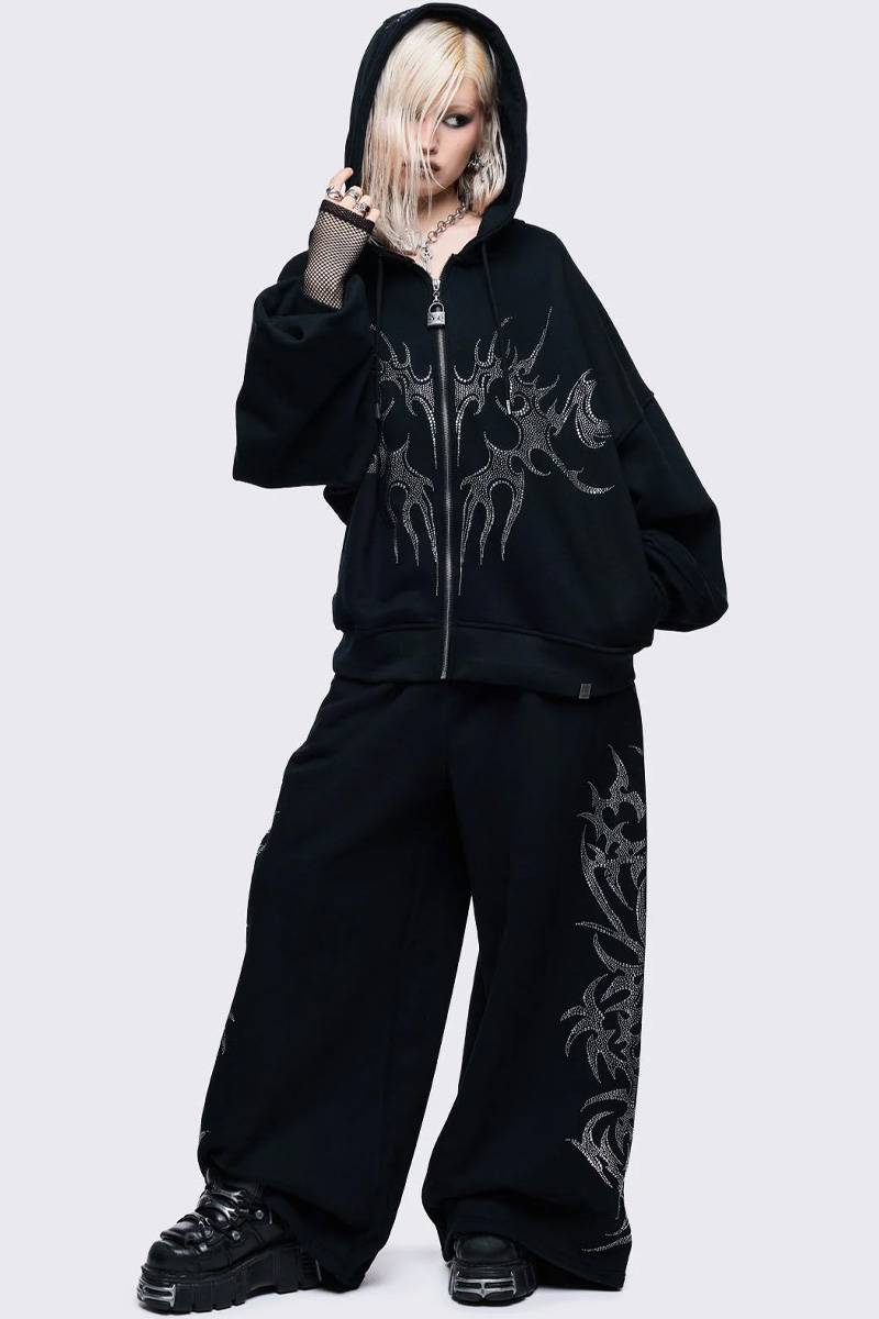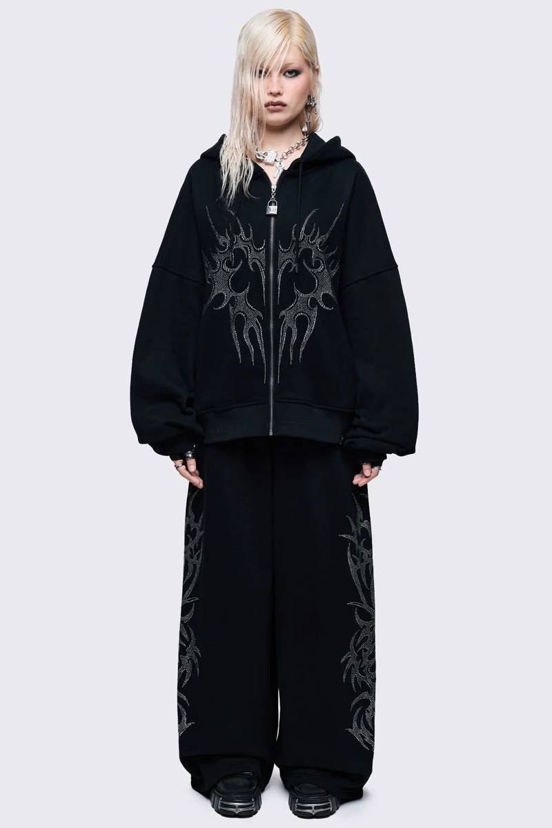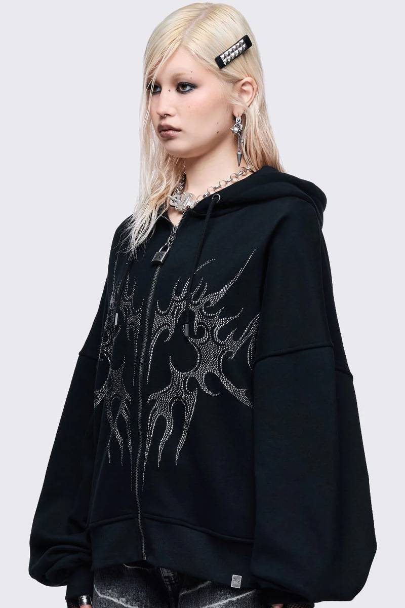 ハート・モチーフのラインストーン・デザインが目を引くジップ・アップ・フーディー。