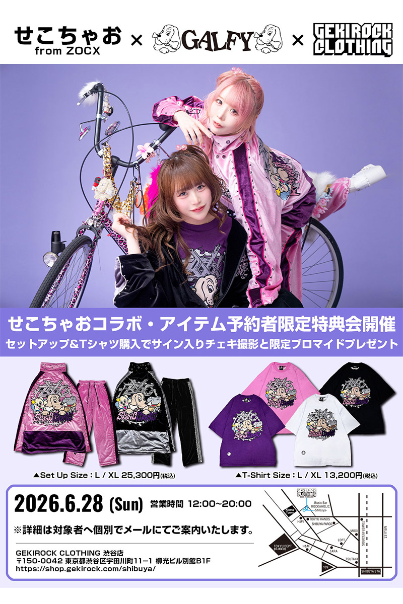 本コラボ・セットアップをご予約の方は2026年6月28日(日)GEKIROCK CLOTHING渋谷店にてせこちゃお from ZOCX特典会イベントに参加可能!