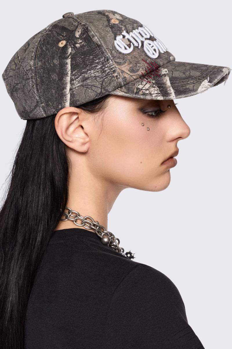 リアル・ツリー調のカモ柄が印象的なデニム・ベース・ボール・キャップ。