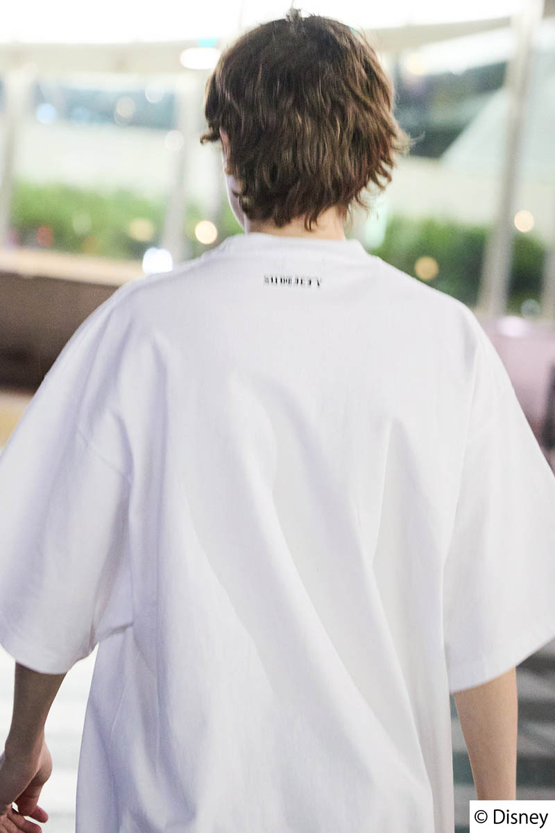 ボックスシルエットのプリントTee。ざっくりとした生地感のオープンエンド糸の7.1オンスの天竺生地を採用。高密度に編み込まれており、縮みや型崩れの少なさが特徴。