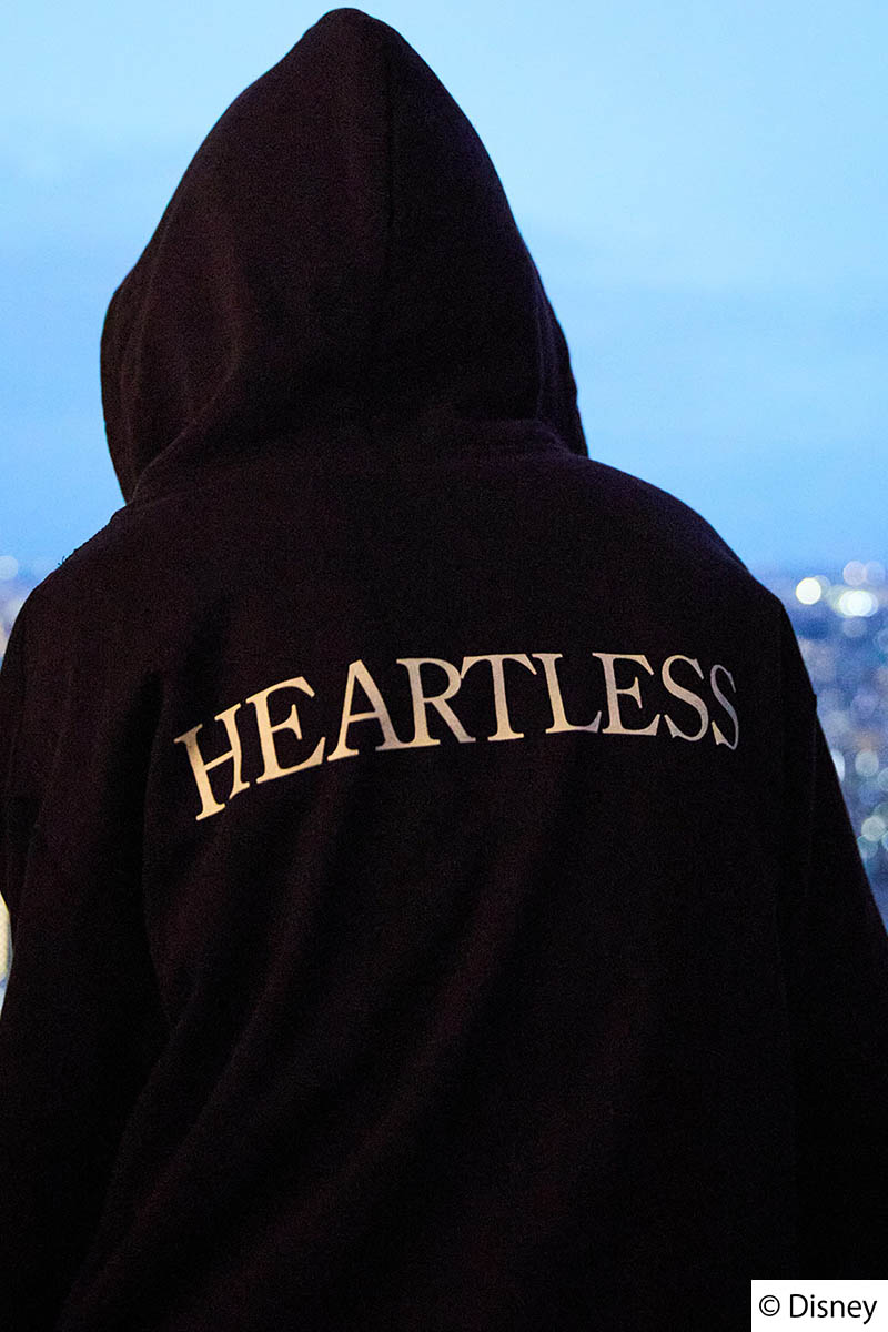 左胸にはハートレスのマークを刺繍で施し、バックには『HEARTLESS』のタイポグラフィをプリントで施しました。