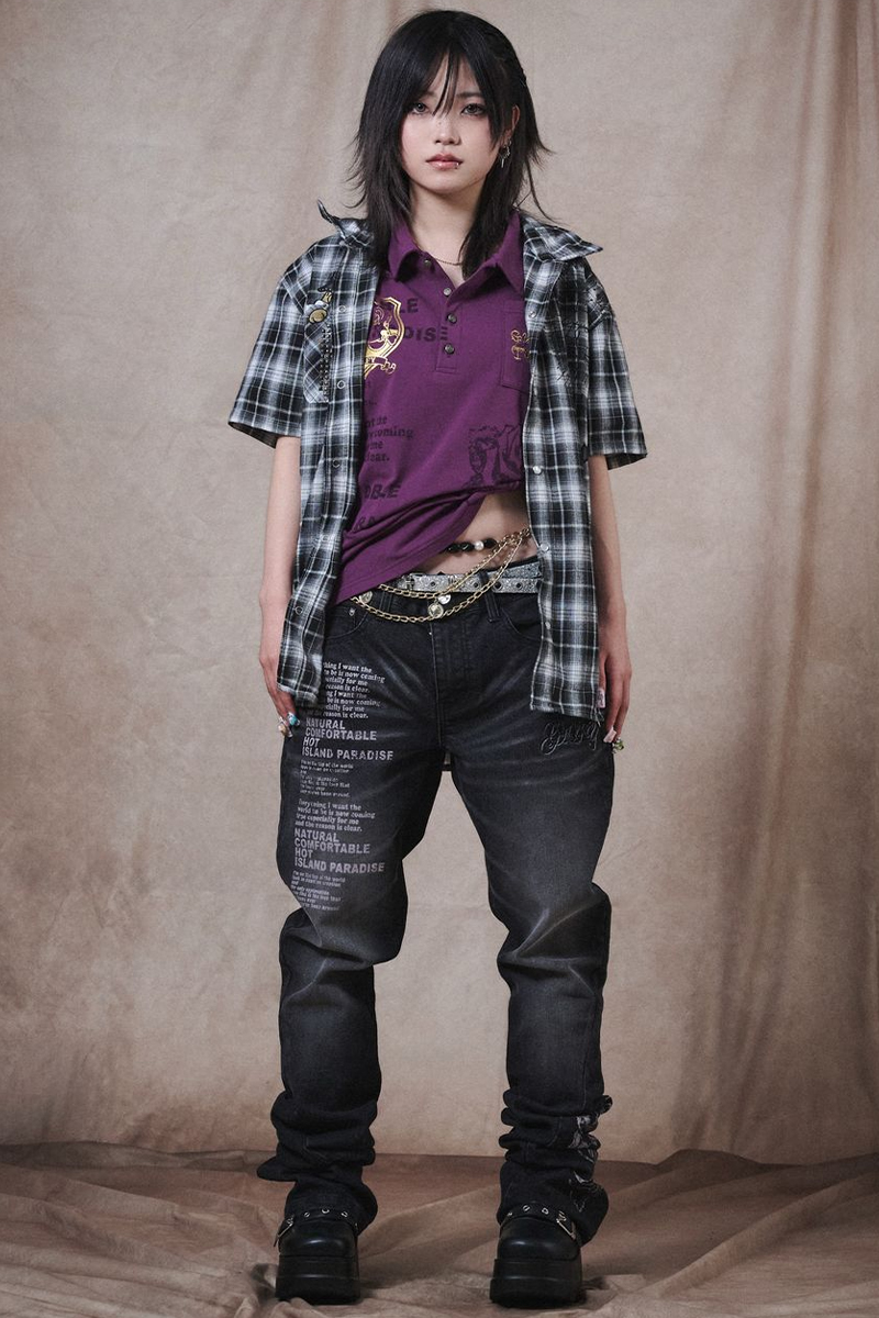 【予約商品】GALFY (ガルフィー) 爆アゲ↑↑チェックシャツ - Black
