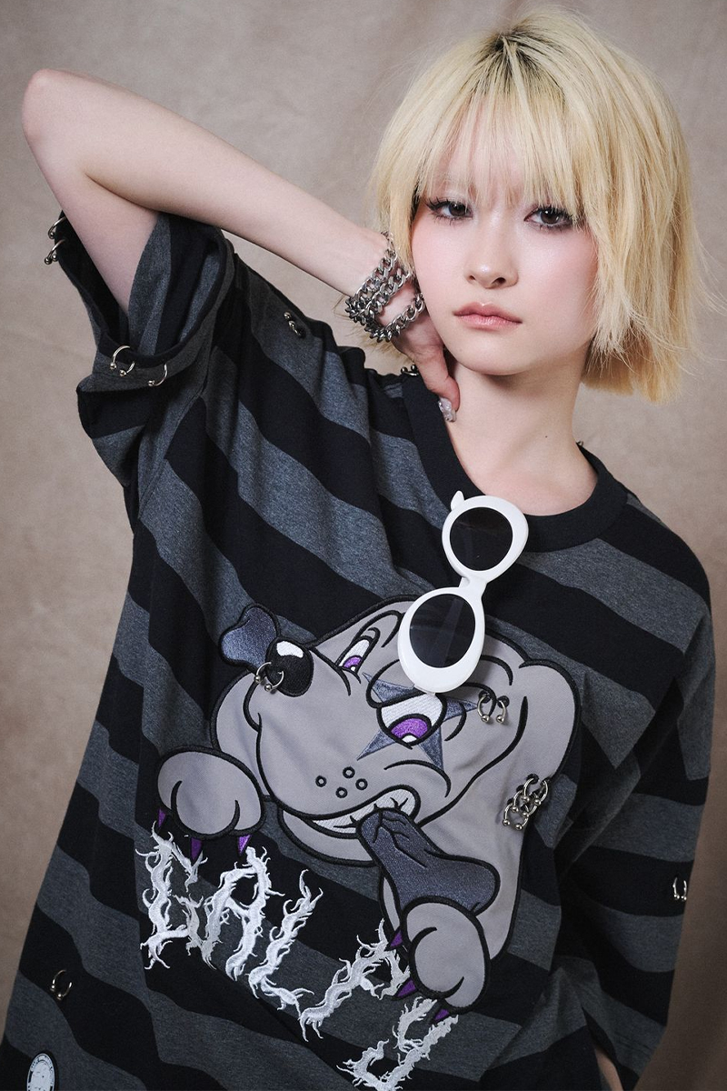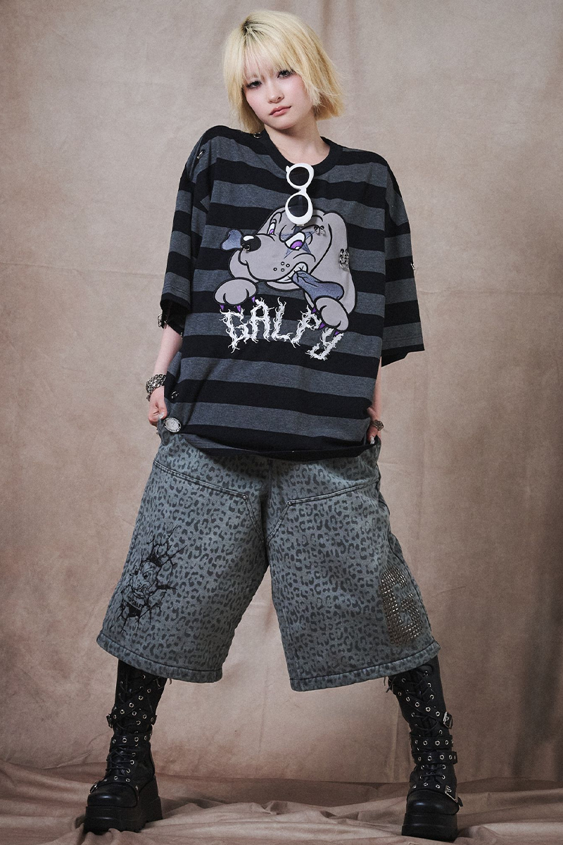 【予約商品】GALFY (ガルフィー) バチバチピアスTee - BLKxGRYボーダー