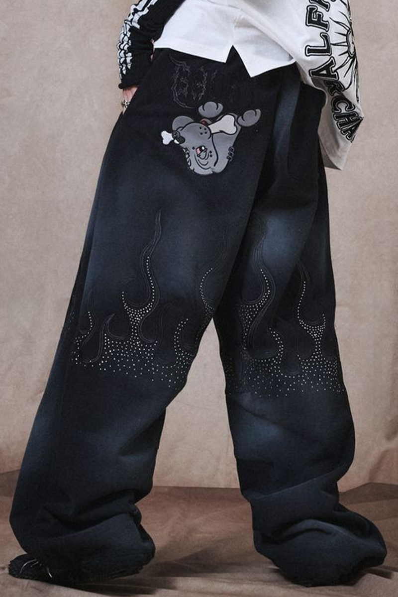【予約商品】GALFY (ガルフィー) ファイヤーピカピカ汚れたパンツ - Black