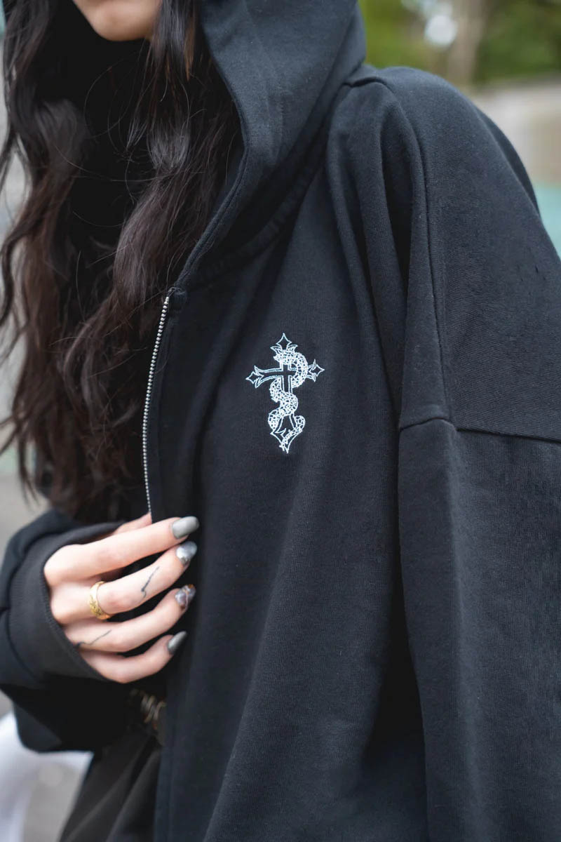 胸元にクロススネーク刺繍が入ったパーカーです!!