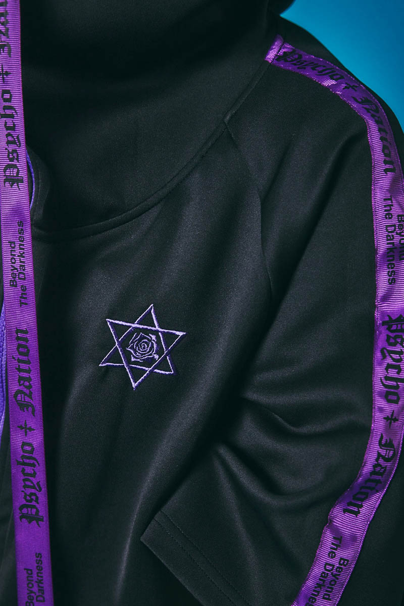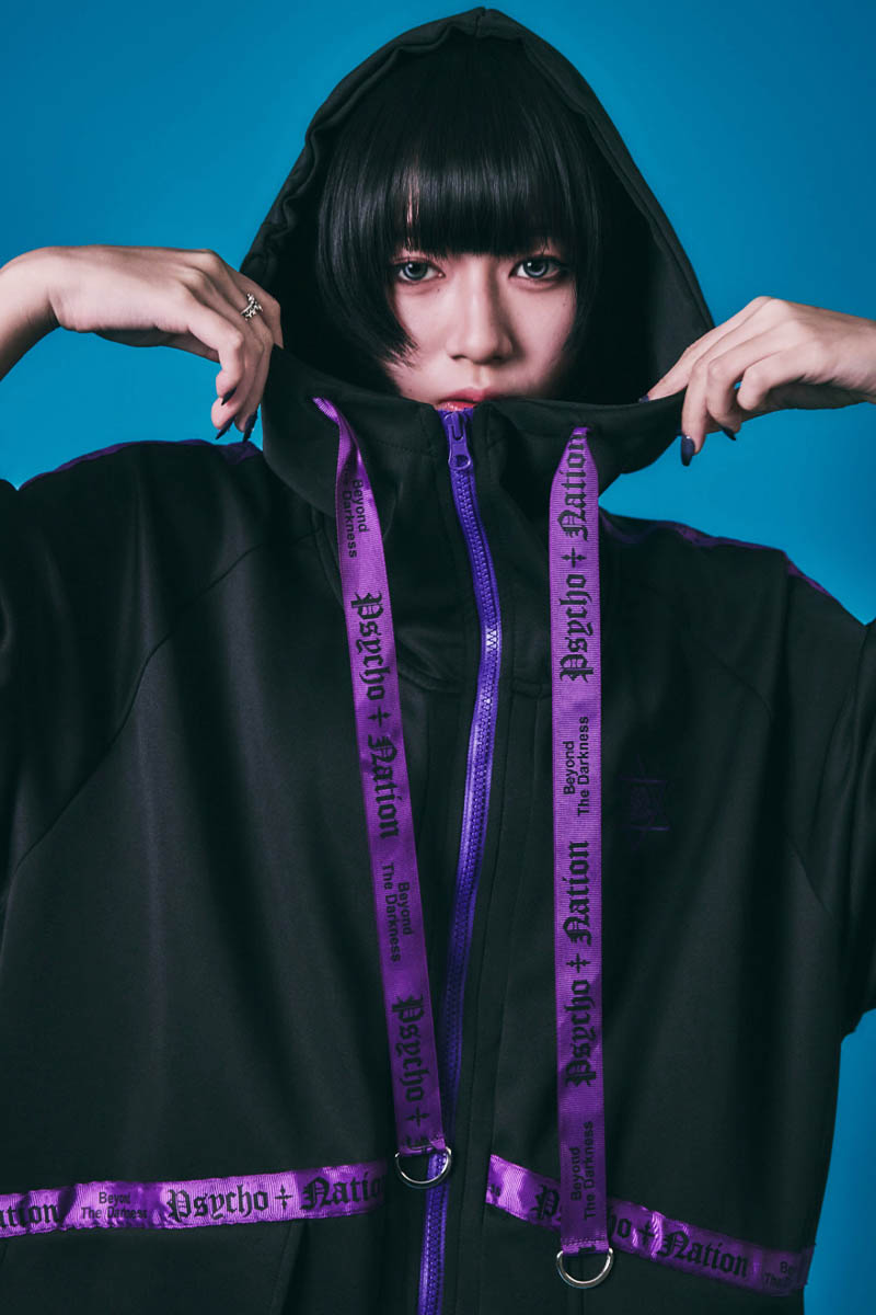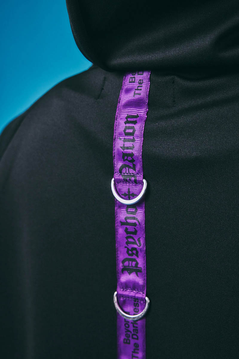 PSYCHO NATION(サイコ・ネーション) ロゴ・テープZIPパーカー - BlackXPurple