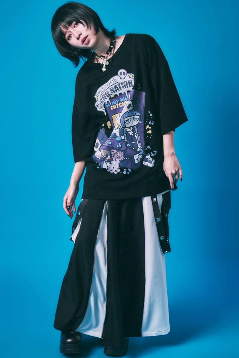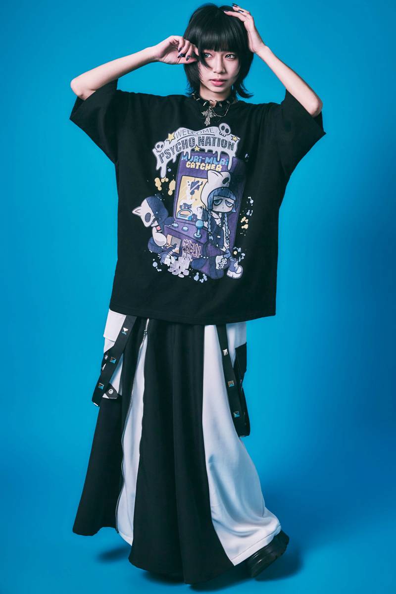 フロントにはダークでキャッチーなキャラクター・イラストを大きく落とし込み、病みかわや地雷系のテイストを感じさせながらも、ストリートにも取り入れやすい絶妙なデザインに仕上げました。