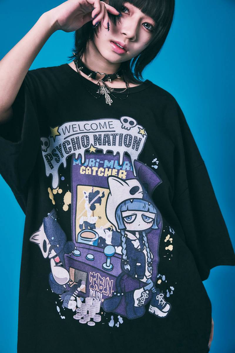 PSYCHO NATION(サイコ・ネーション) 木天蓼にゃん子TEE - Black
