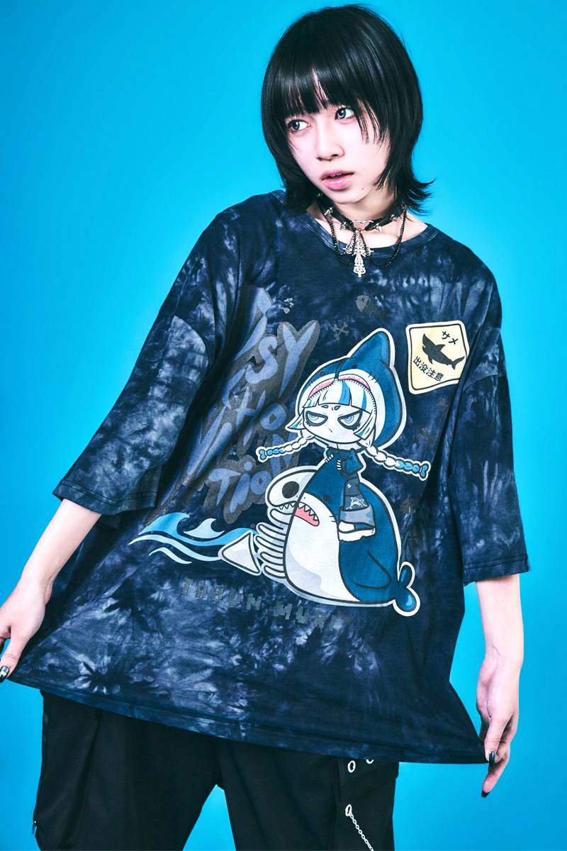 PSYCHO NATION(サイコ・ネーション) 鮫島サメ子TEE - Blueタイダイ