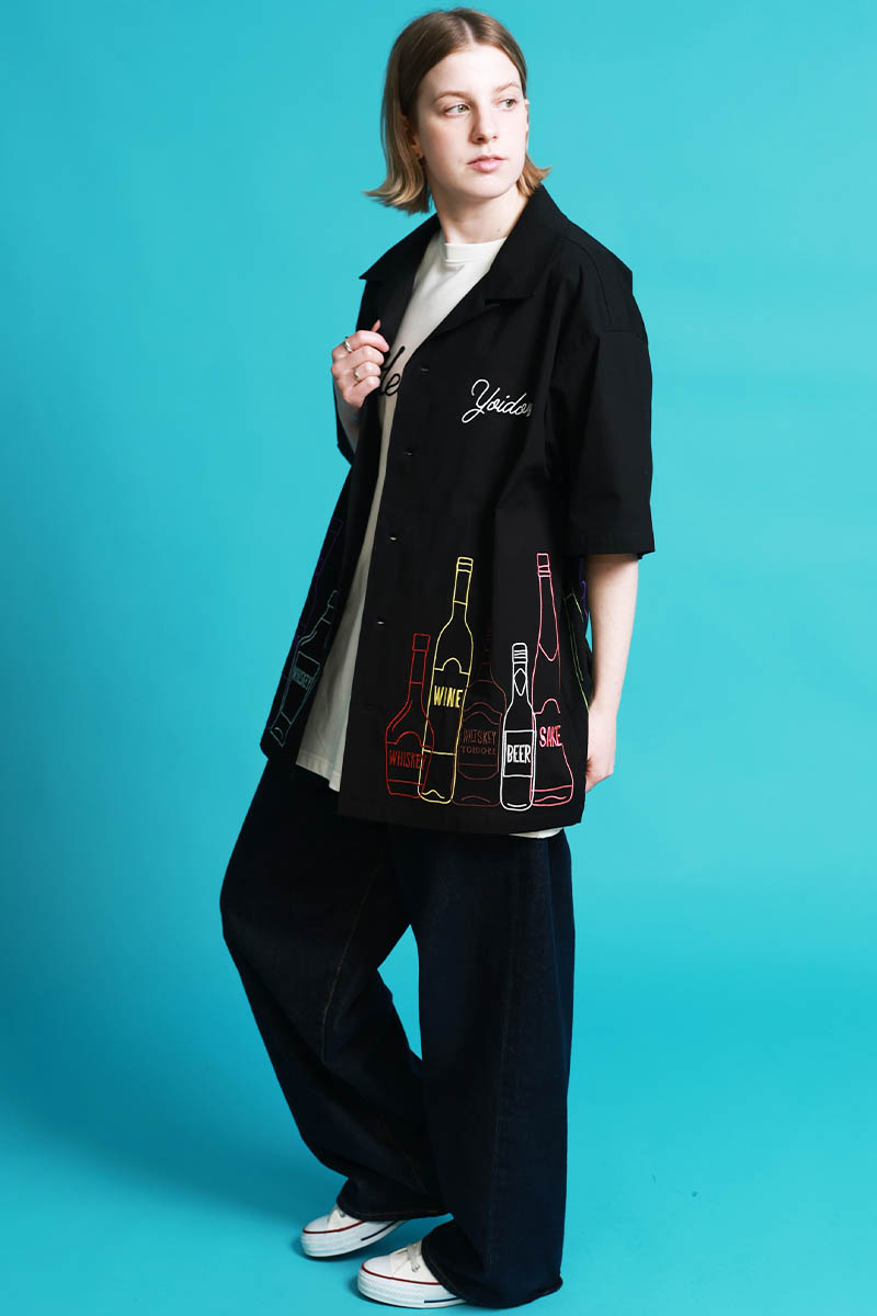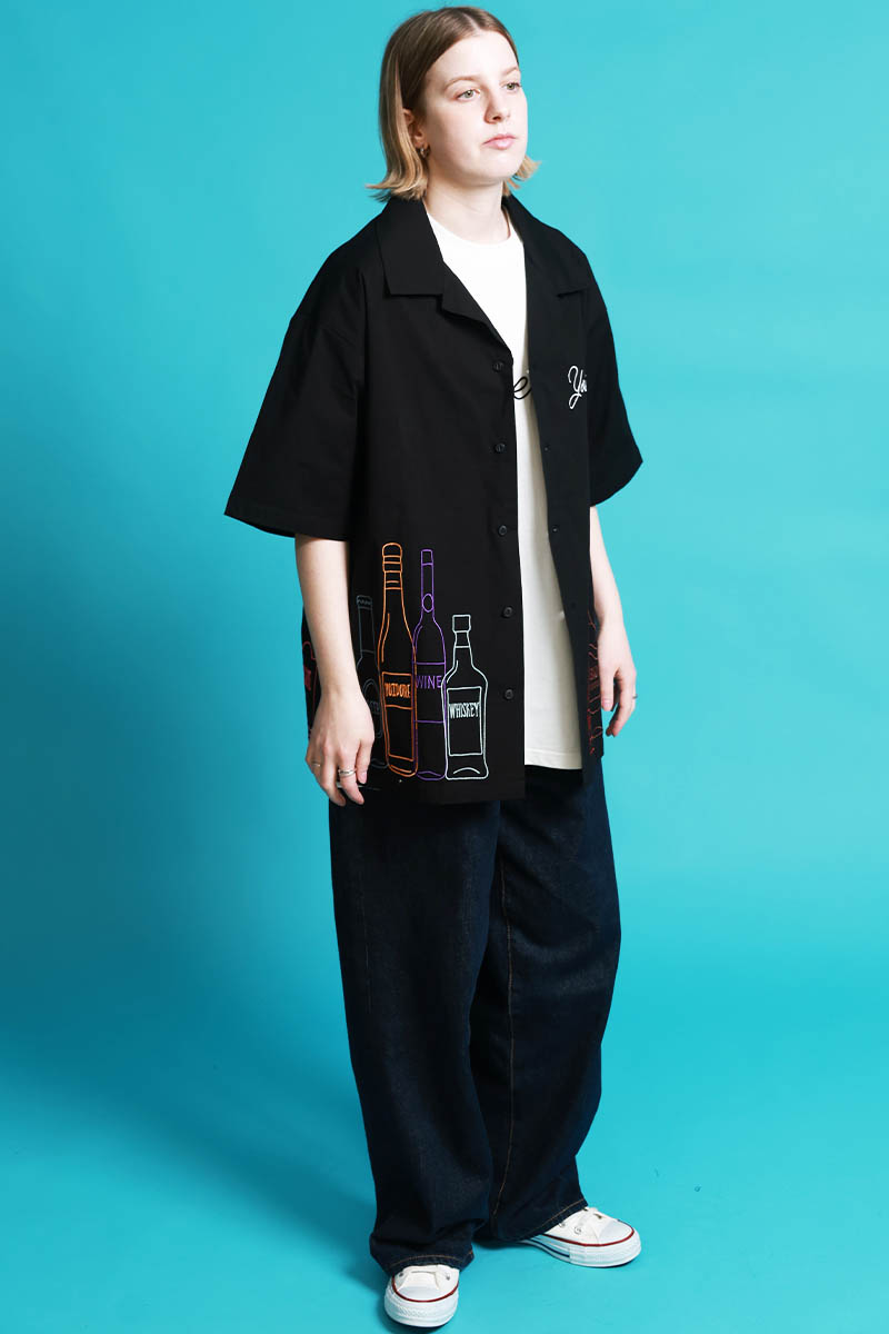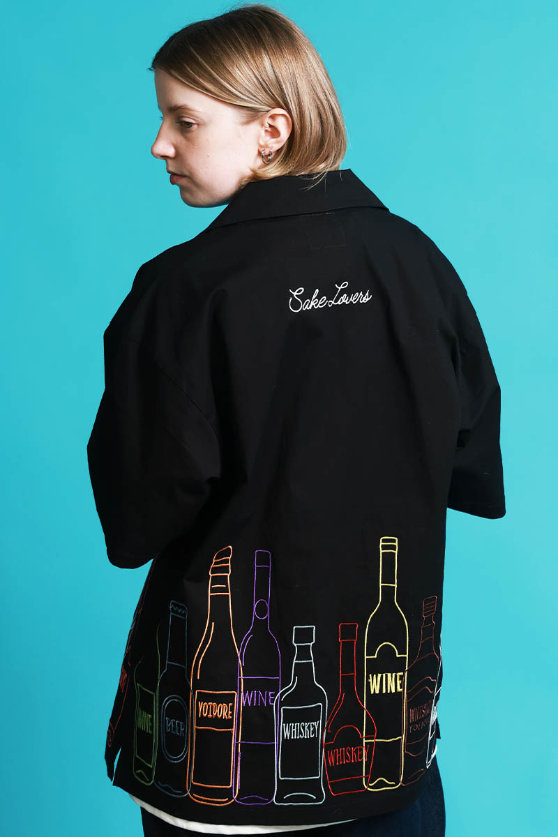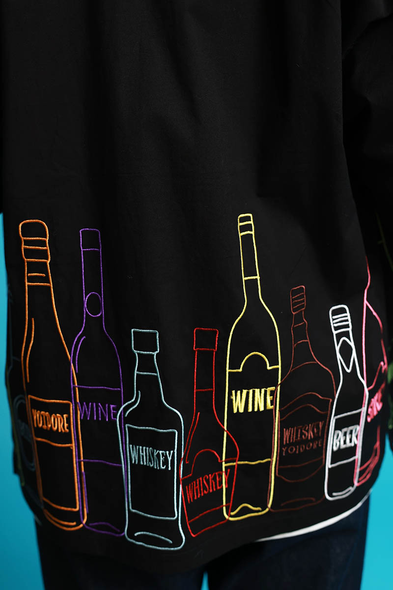 YOIDORE(ヨイドレ) 酒ボトル刺繍シャツ - Black