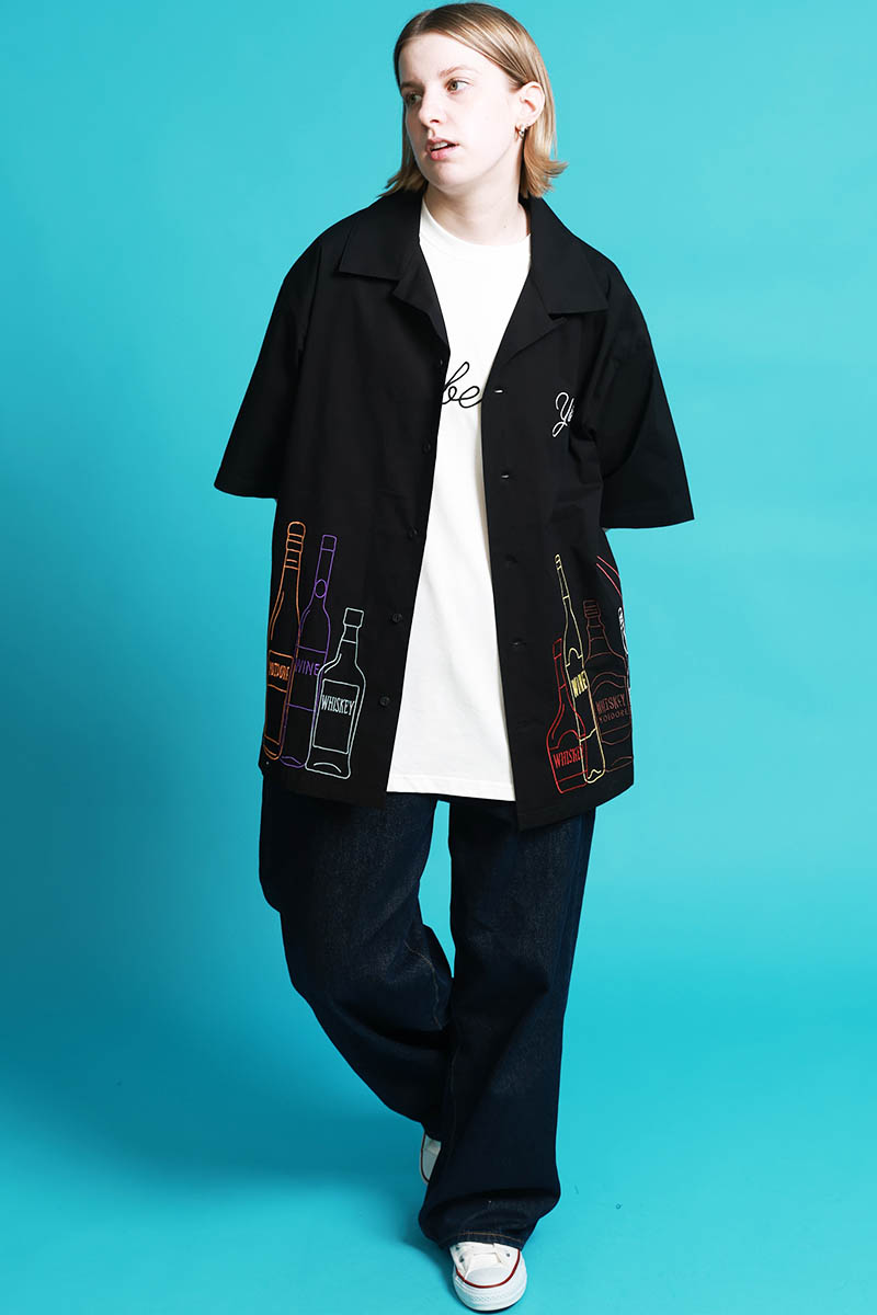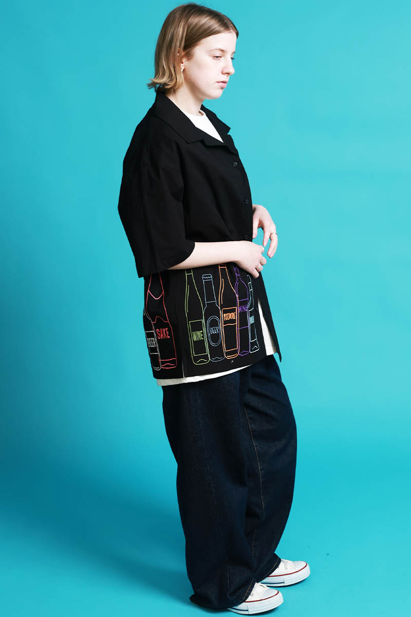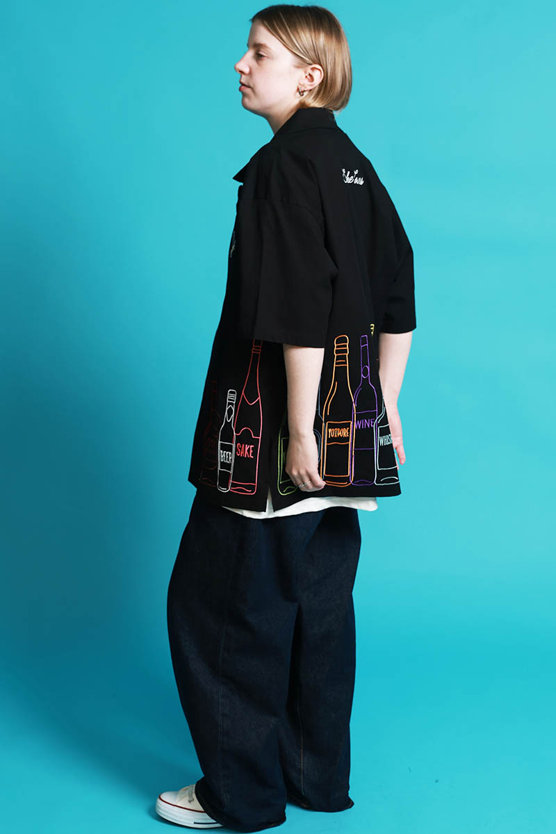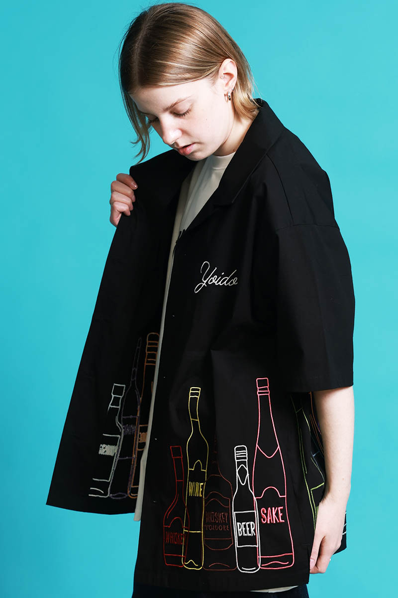YOIDORE(ヨイドレ) 酒ボトル刺繍シャツ - Black