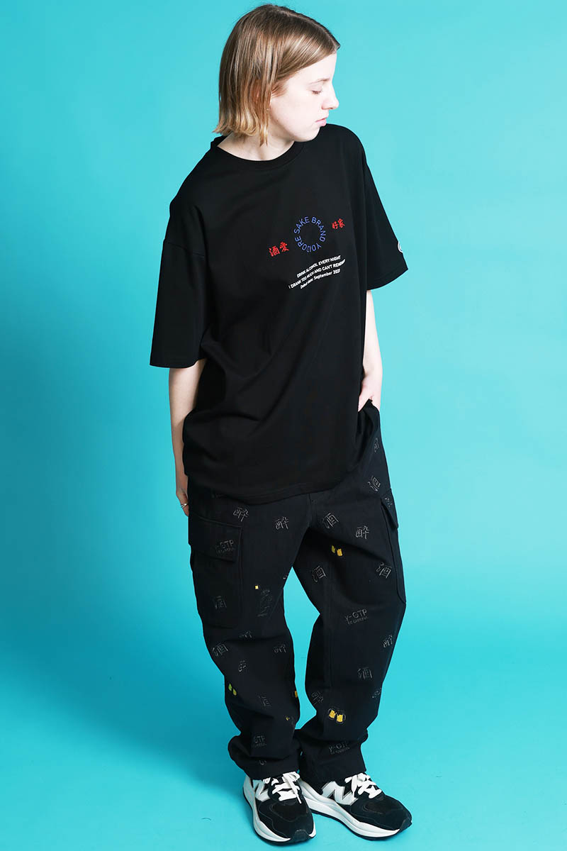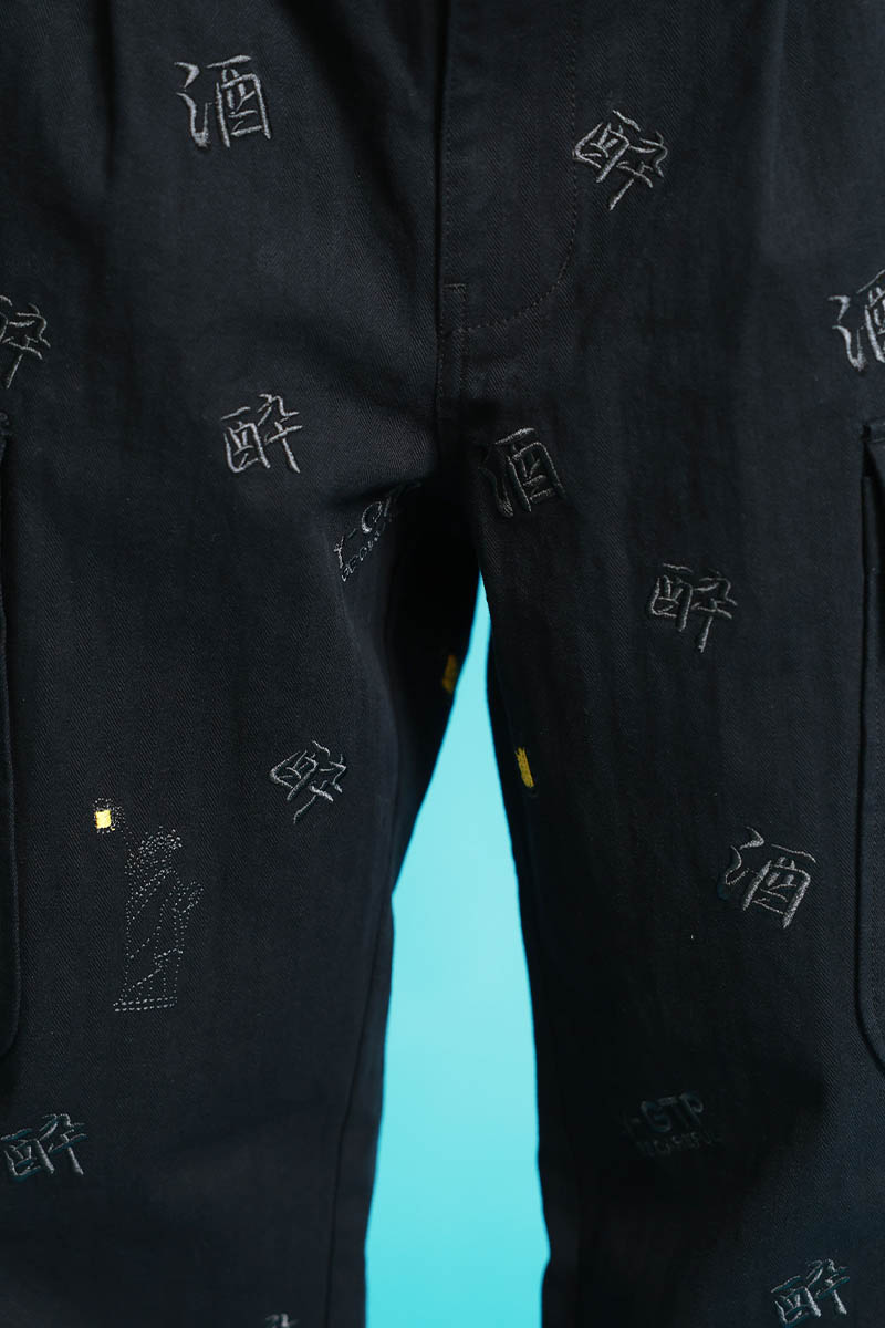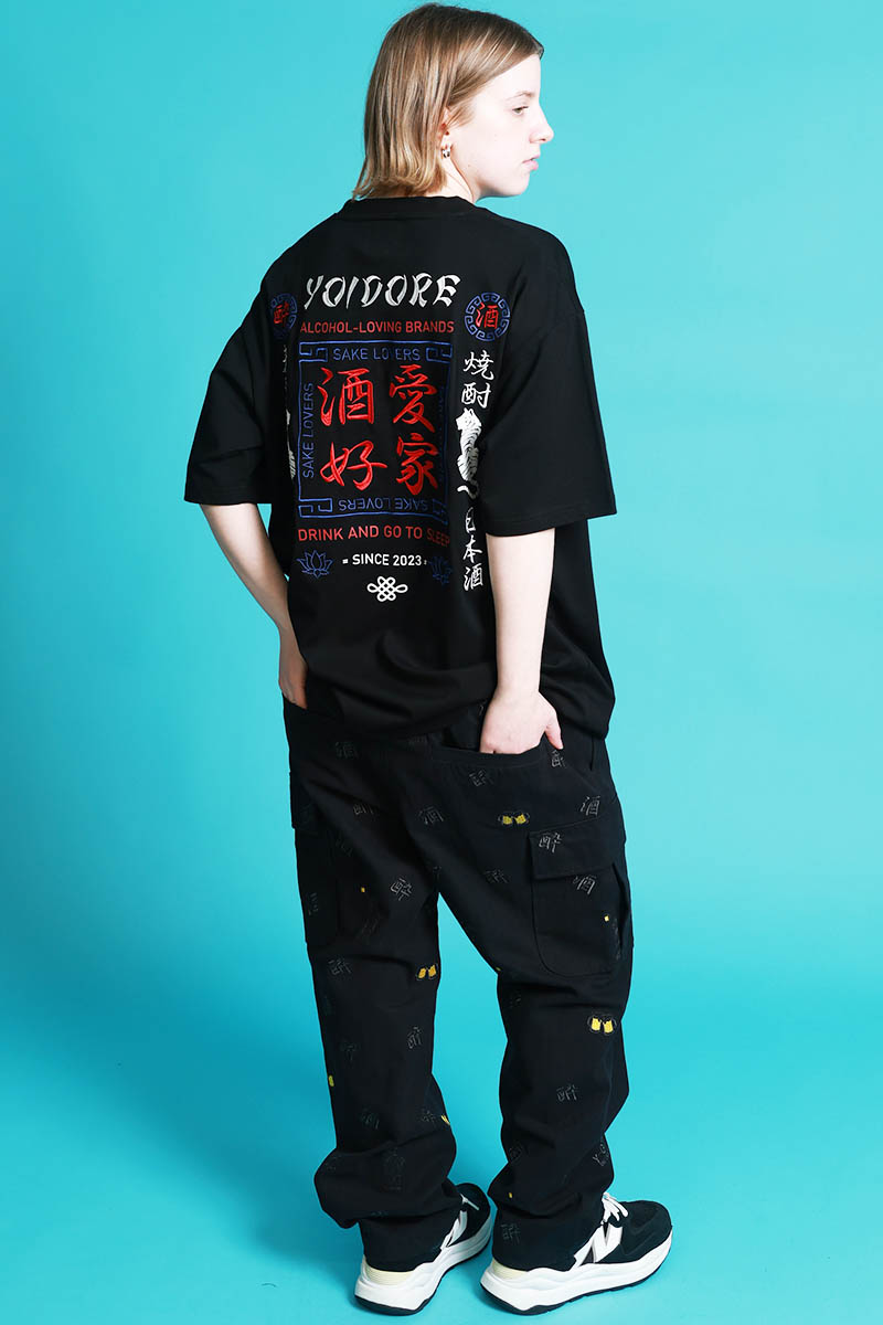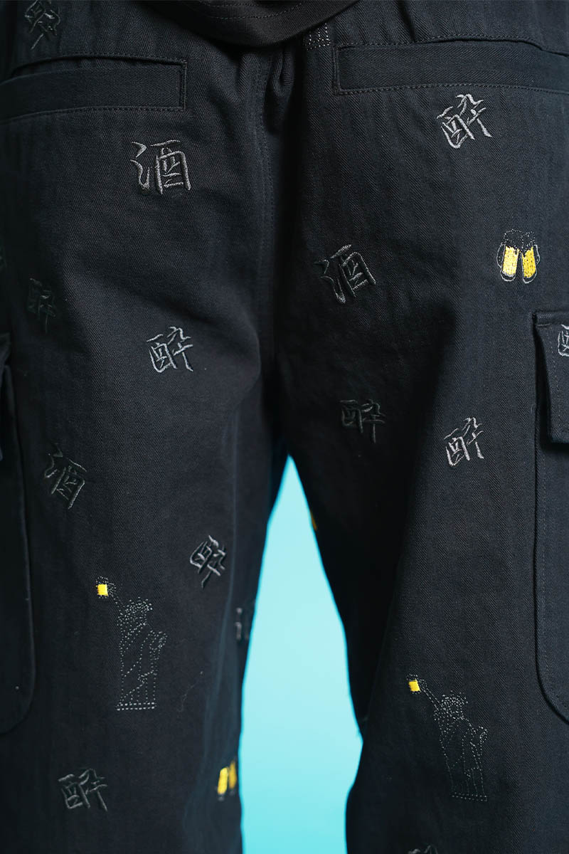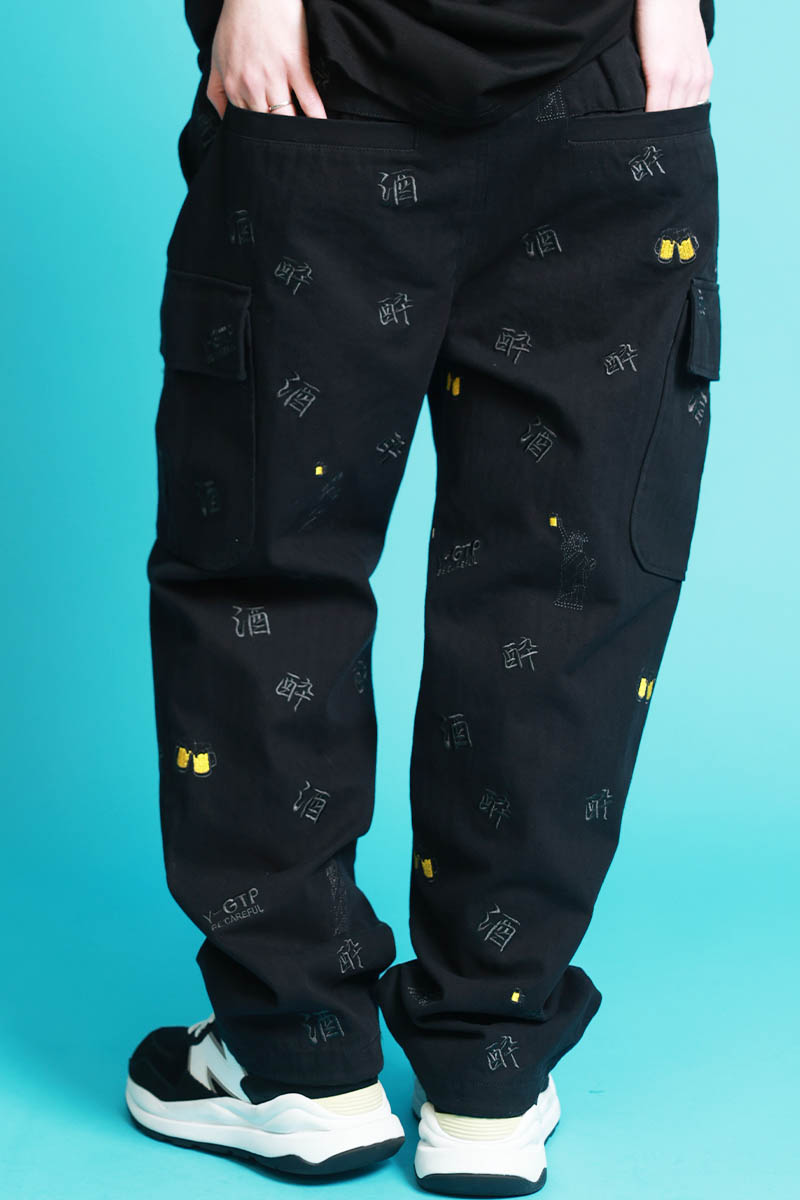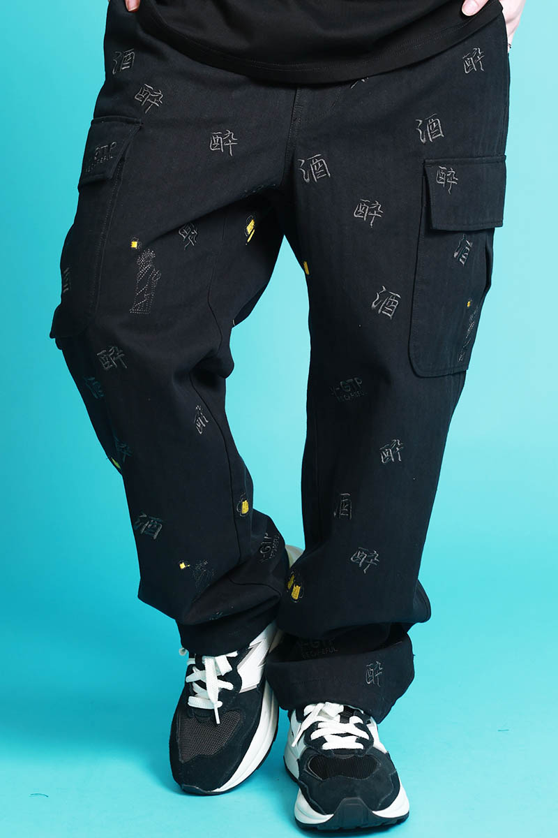 YOIDORE(ヨイドレ) 酒刺繍総柄カーゴ・パンツ - Black