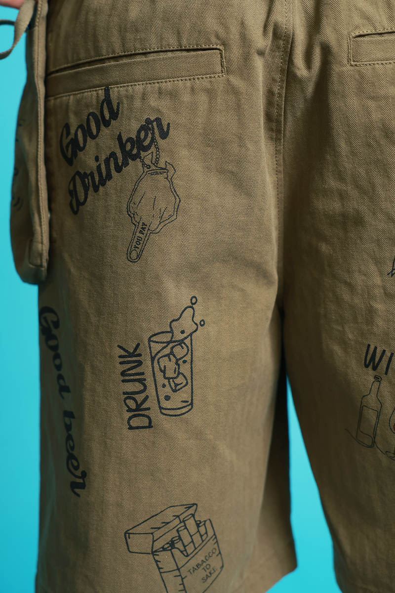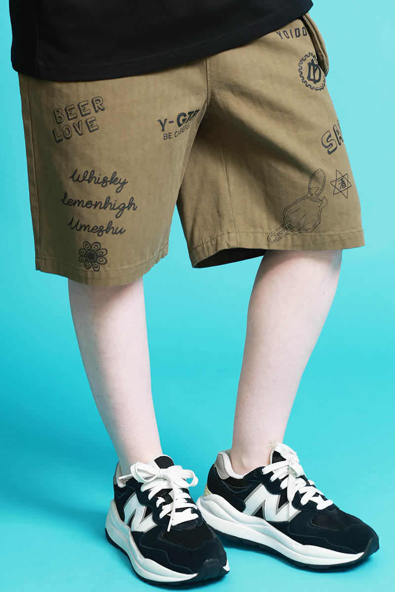 YOIDORE(ヨイドレ) 落書きポーチ・バッグ・ショート・パンツ - Khaki