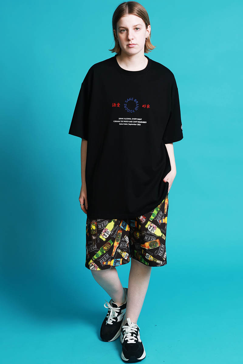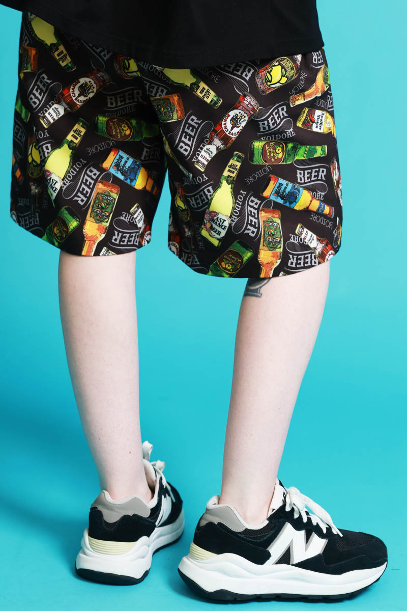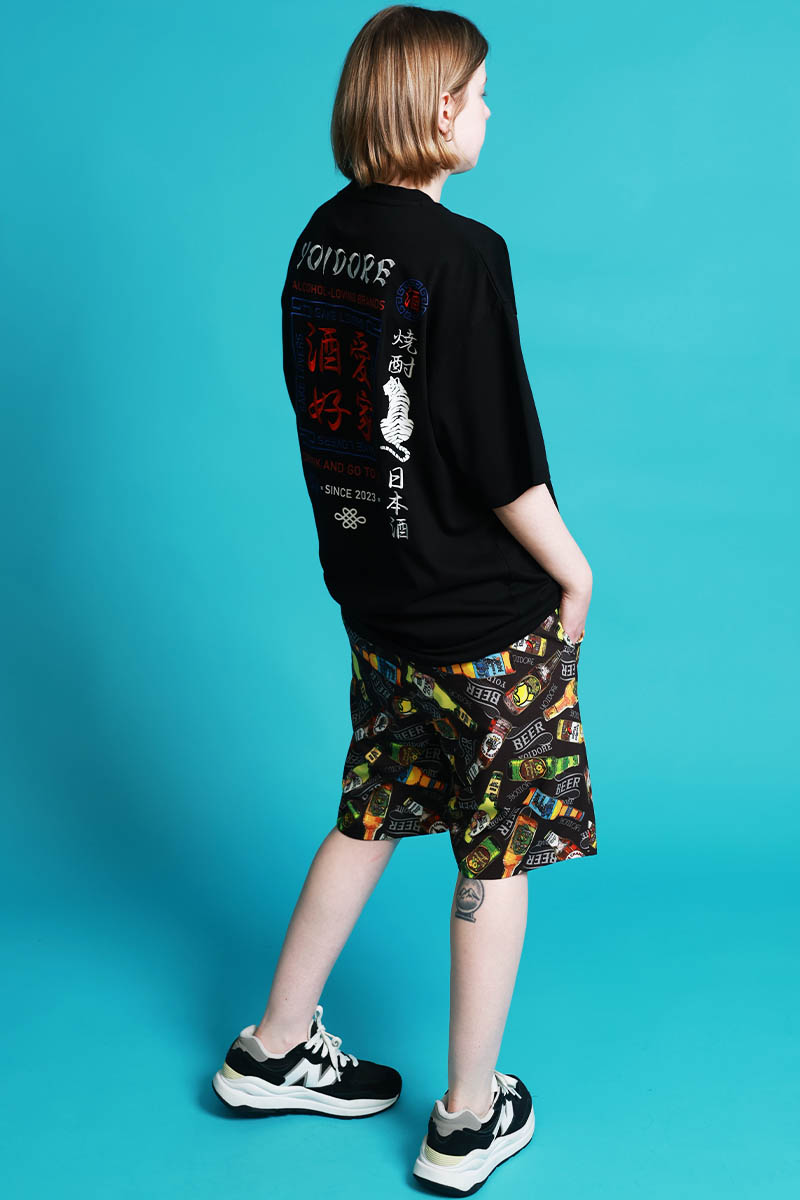 YOIDORE(ヨイドレ) リバーシブル酒総柄ショート・パンツ - Black