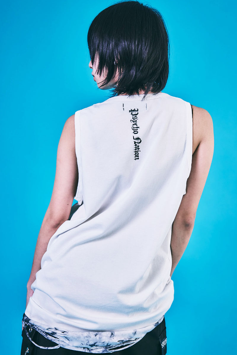 PSYCHO NATION(サイコ・ネーション) ダメージ・レイヤー・タンク・トップ - WhiteXWhiteタイダイ