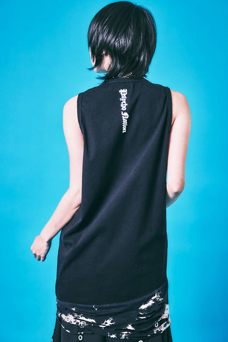PSYCHO NATION(サイコ・ネーション) ダメージ・レイヤー・タンク・トップ - BlackXBlackタイダイ