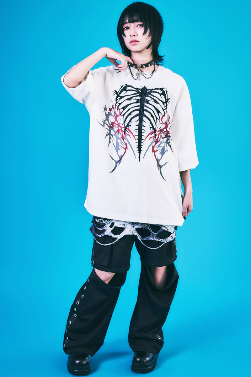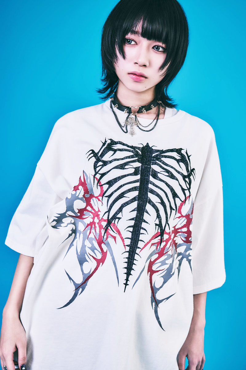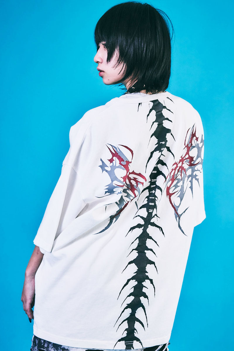 PSYCHO NATION(サイコ・ネーション) トライバル・ボーン刺繍TEE - White
