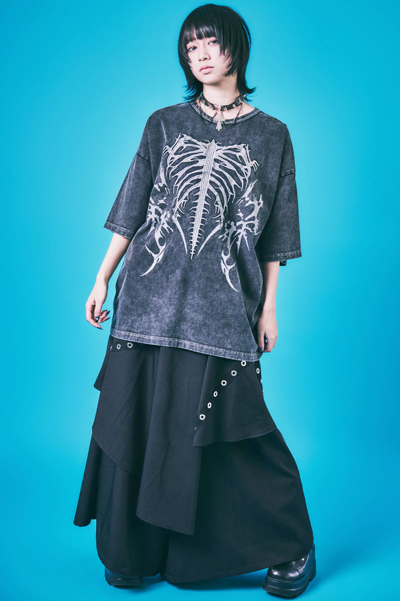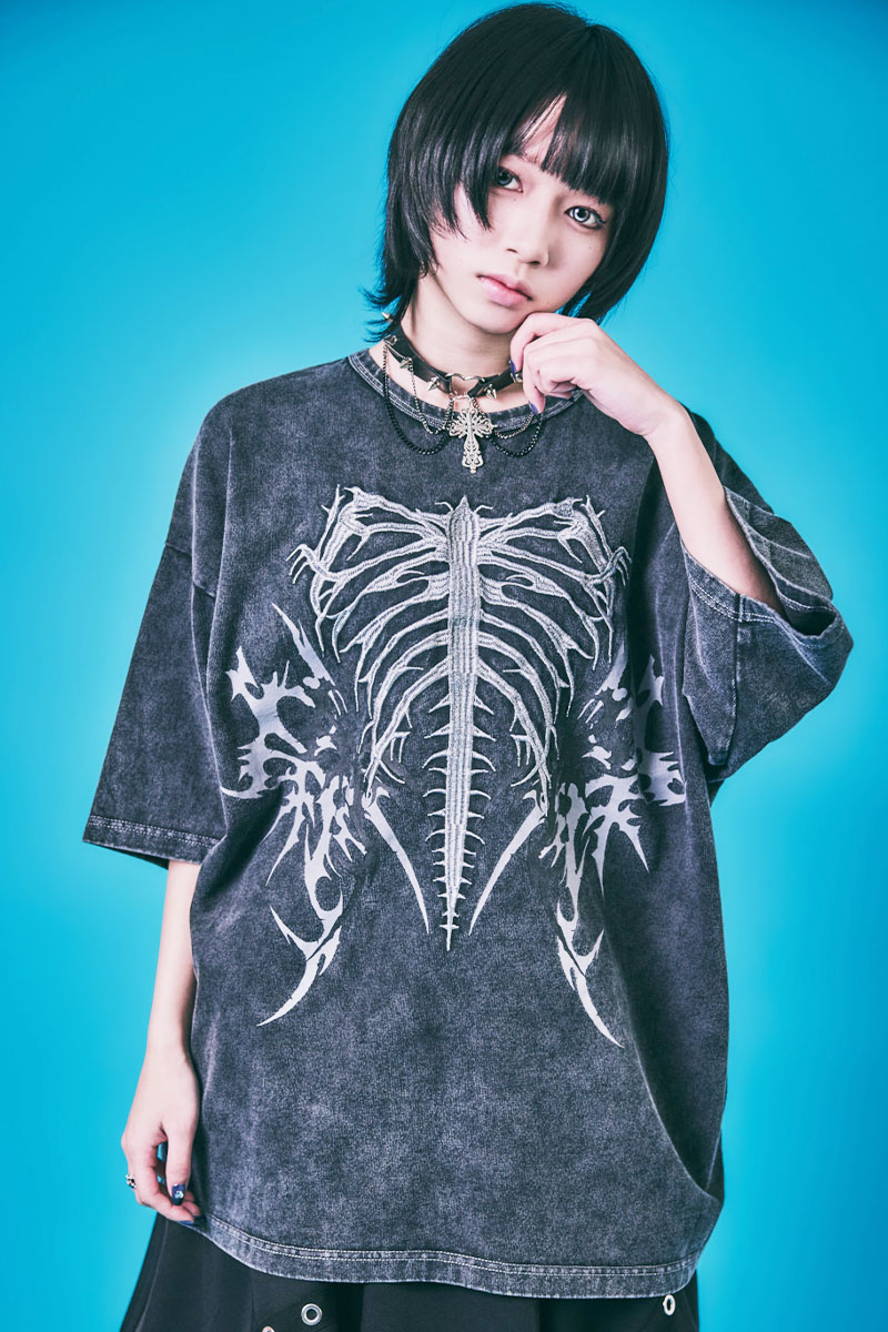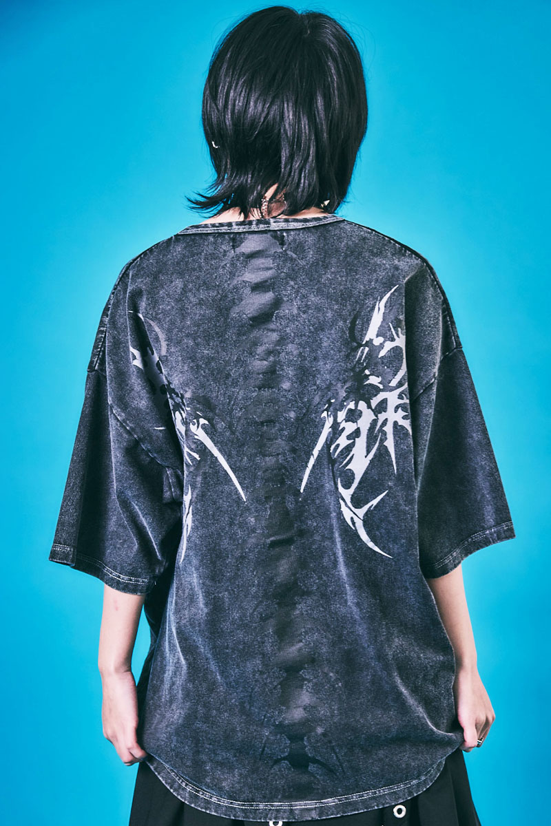 PSYCHO NATION(サイコ・ネーション) トライバル・ボーン刺繍TEE - Pigment Black