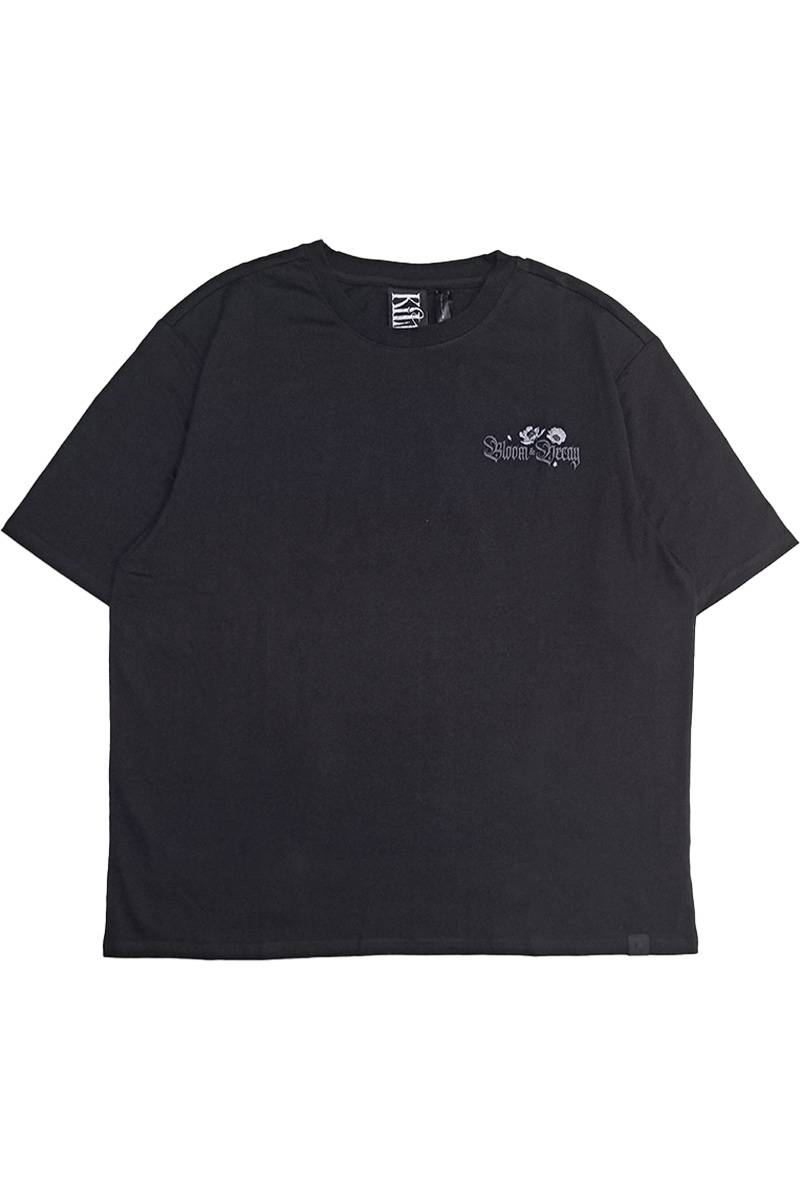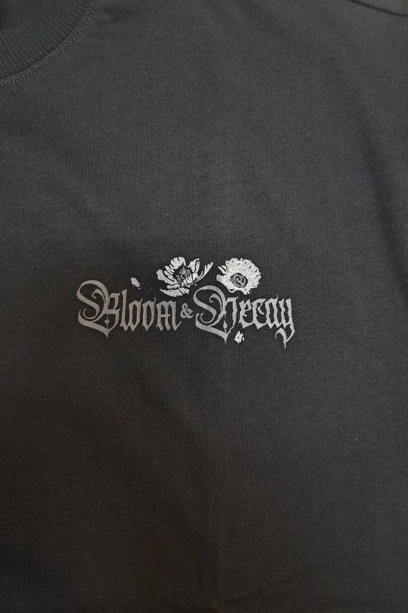 胸元には「Bloom & Decay(開花と衰退)」のメッセージと花のプリントをワンポイントで配置。