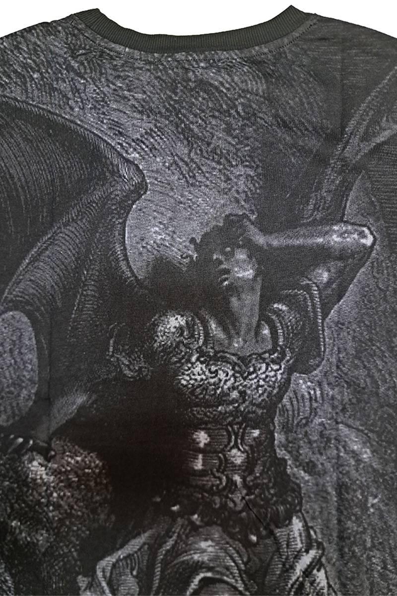 フロントからバックまで隙間なく描かれた、堕天使や深淵を彷彿とさせるダークな世界観のアートワーク。