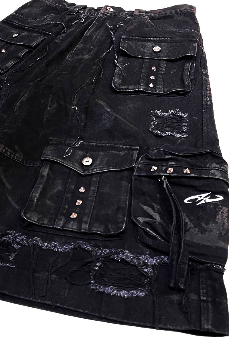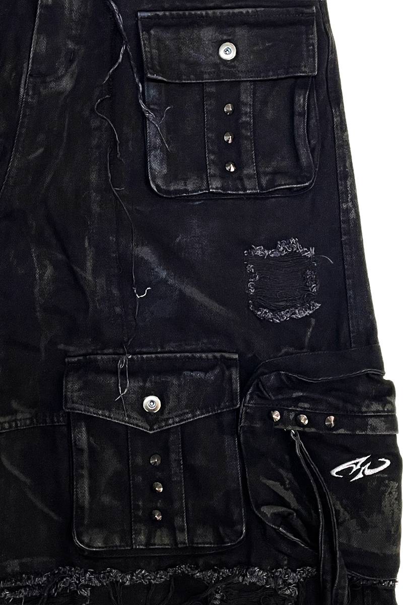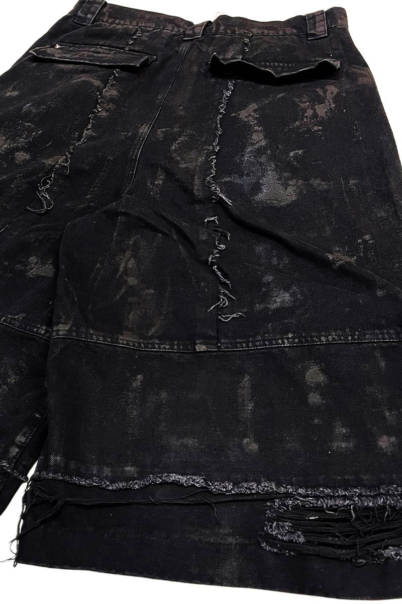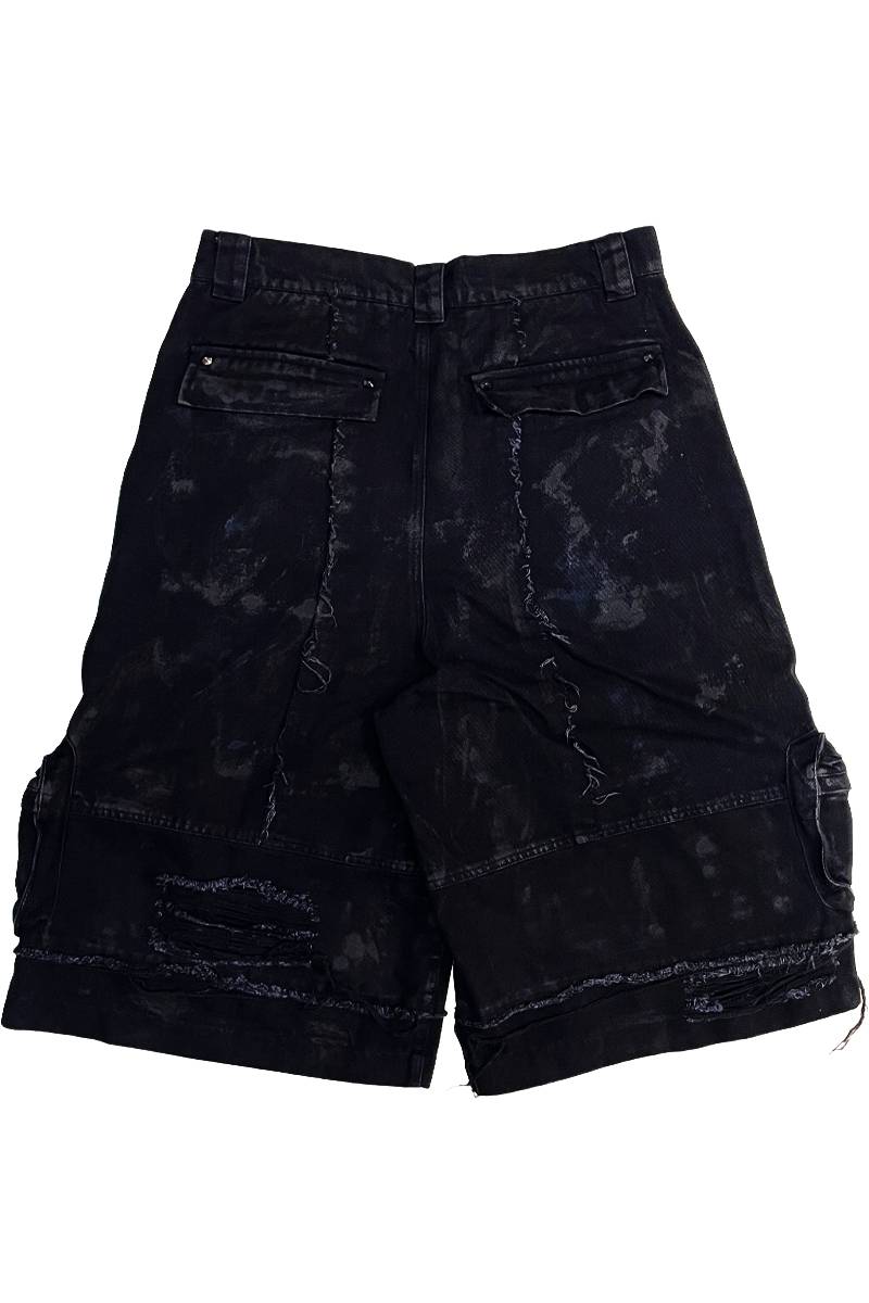 P.N UNDERGROUND (サイコ・ネーション・アンダーグラウンド) ダメージ・カーゴ・ハーフ・パンツ - Black