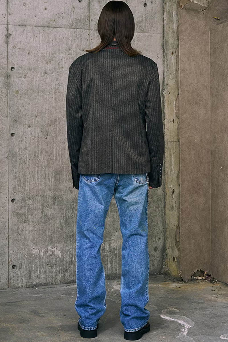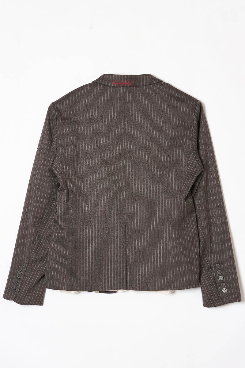 クラシックなピンストライプをベースに、コンパクトなシルエットで再構築したテーラードジャケット。
