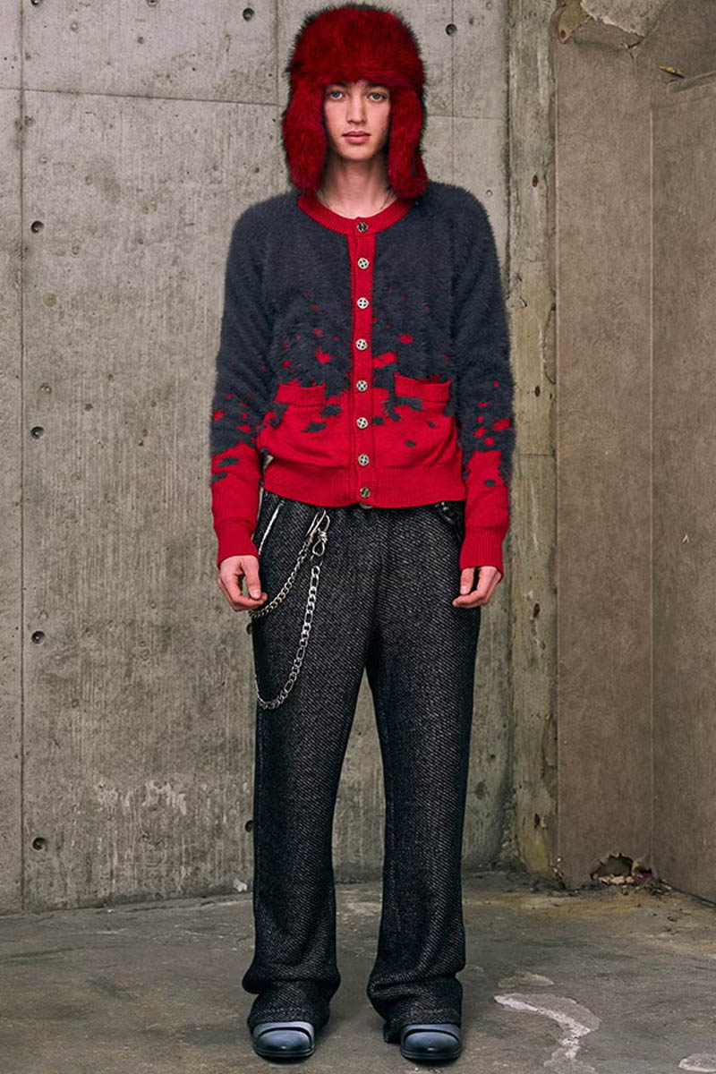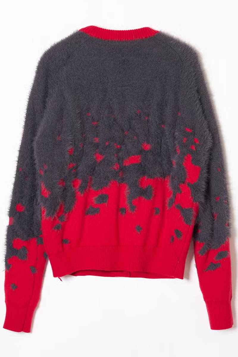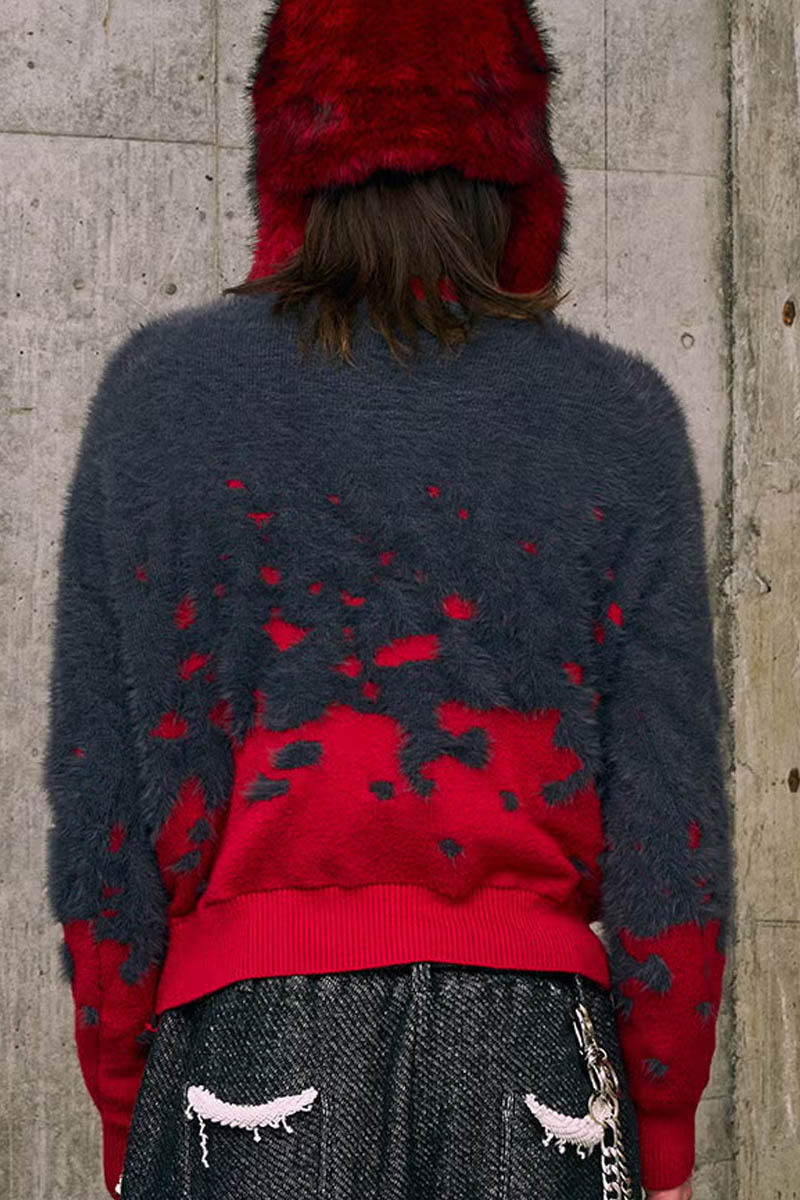 【予約商品】A Good Bad Influence SHATTERED DUAL YARN SHAGGY CARDIGAN - Red