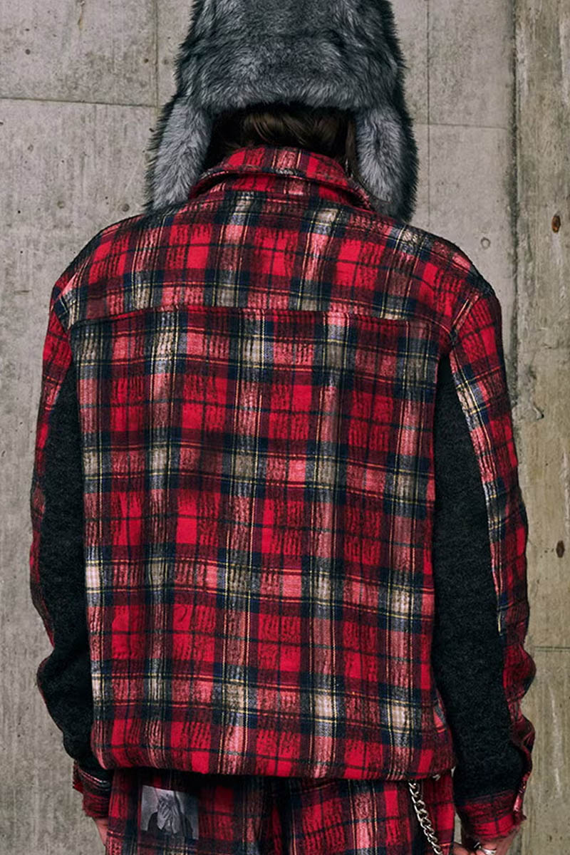 【予約商品】A Good Bad Influence INNER NOISE WOOL CHECKER SHIRT JACKET - Red
