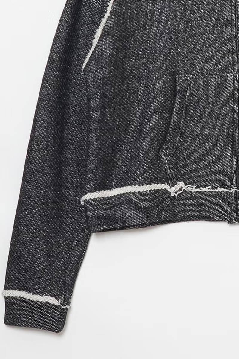 ラグランスリーブの切り替えや、裾・袖口にはカットオフを施し、ラフで抜け感のあるディテールに。