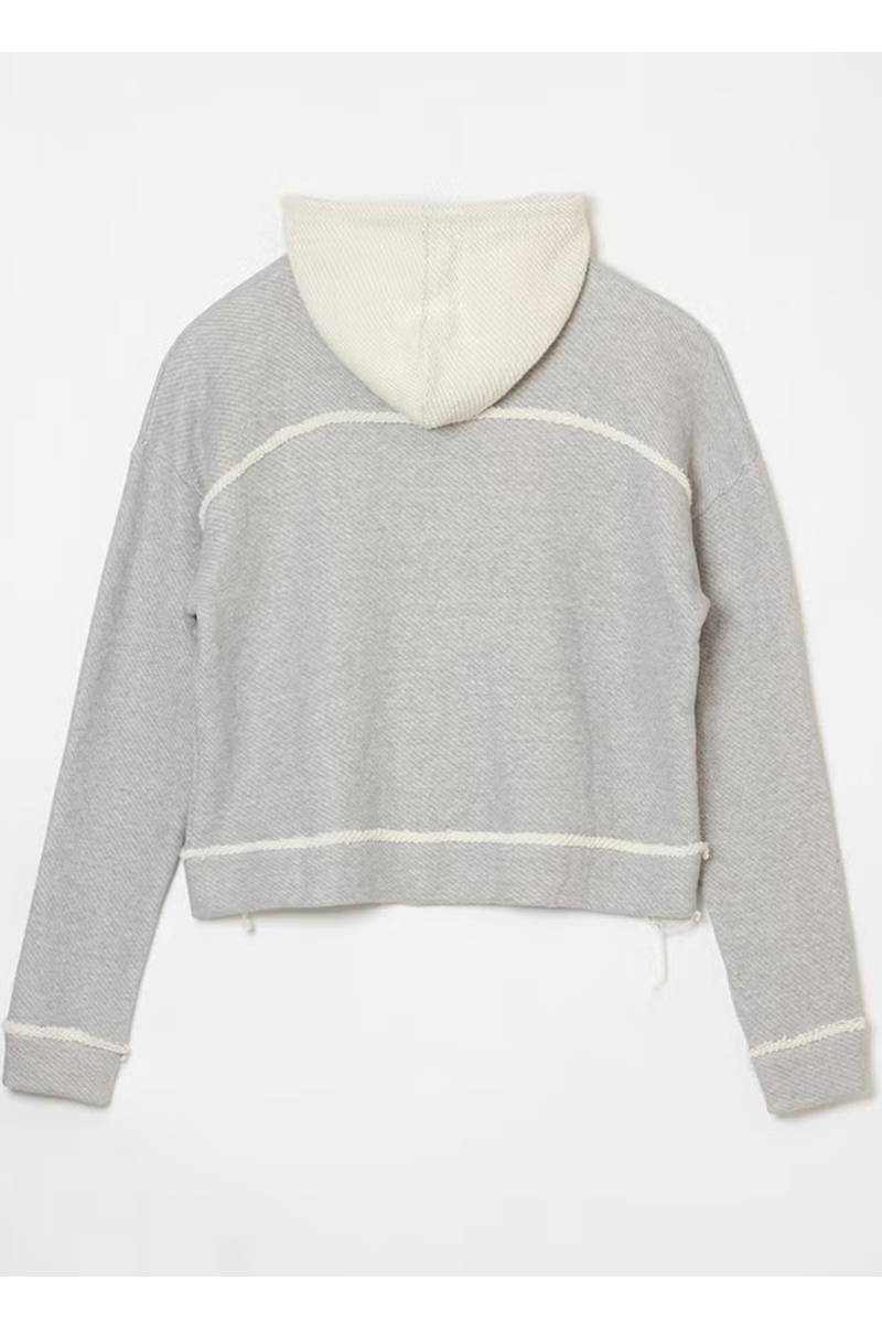 ラグランスリーブの切り替えや、裾・袖口にはカットオフを施し、ラフで抜け感のあるディテールに。