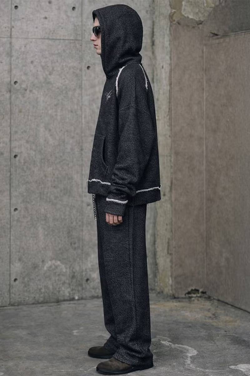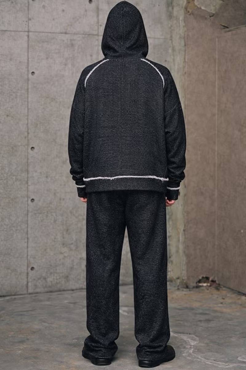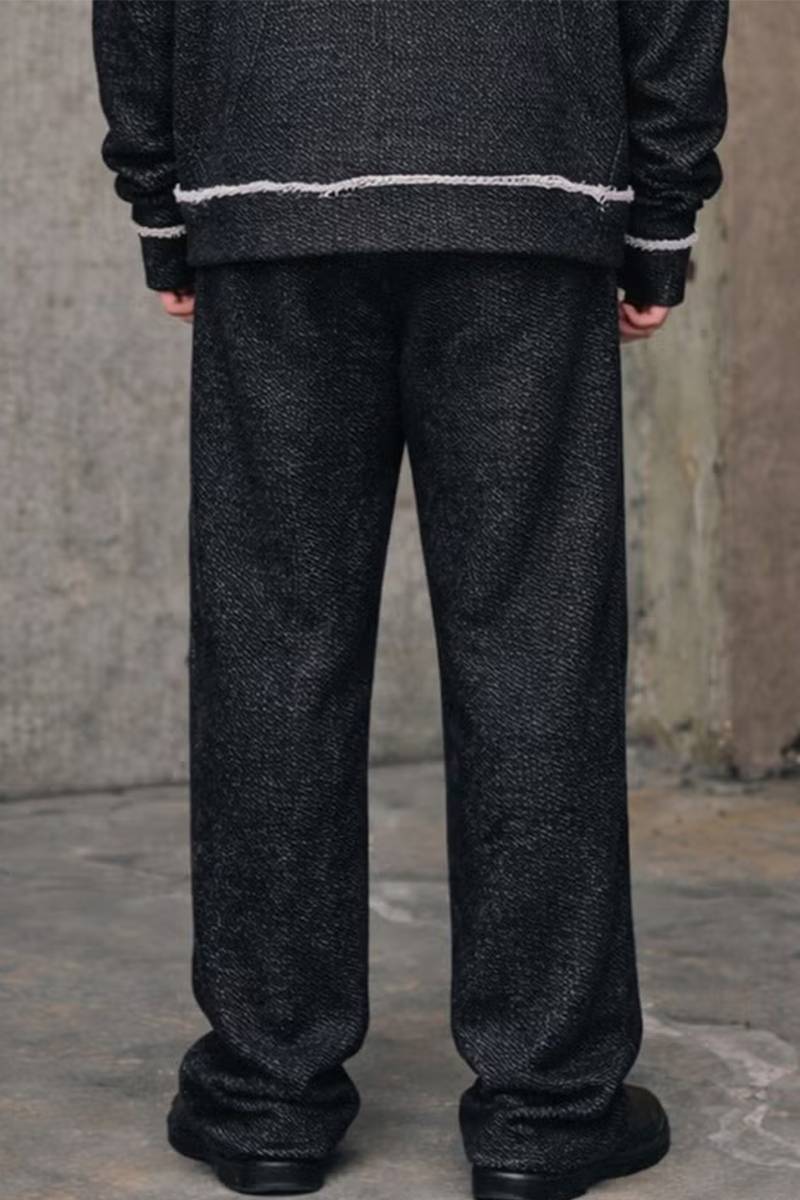 吊り裏毛のような太い糸を使用し、柔らかさとふくらみのある風合いを持たせたフレアパンツ。