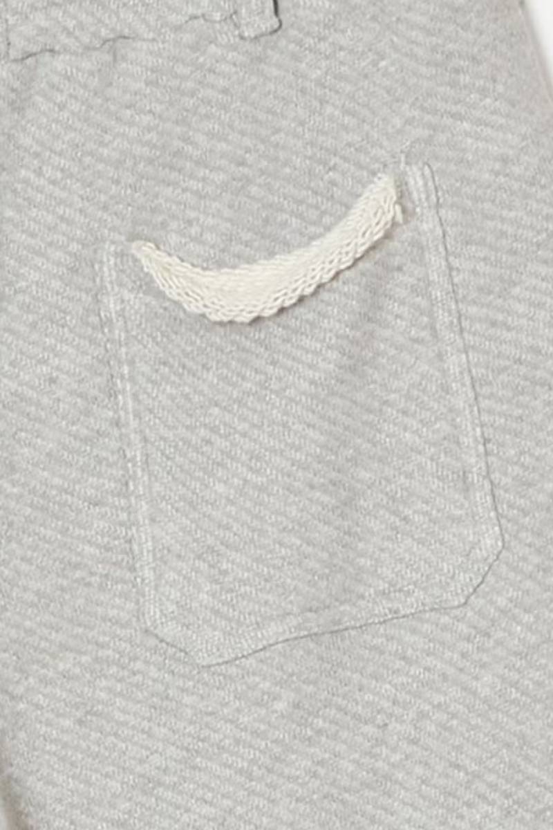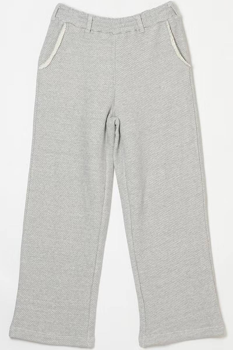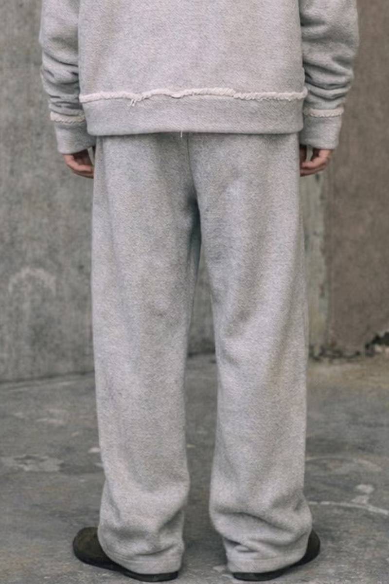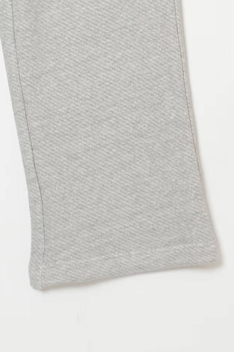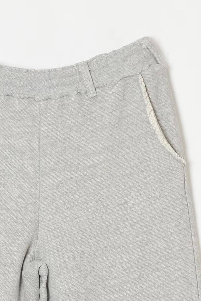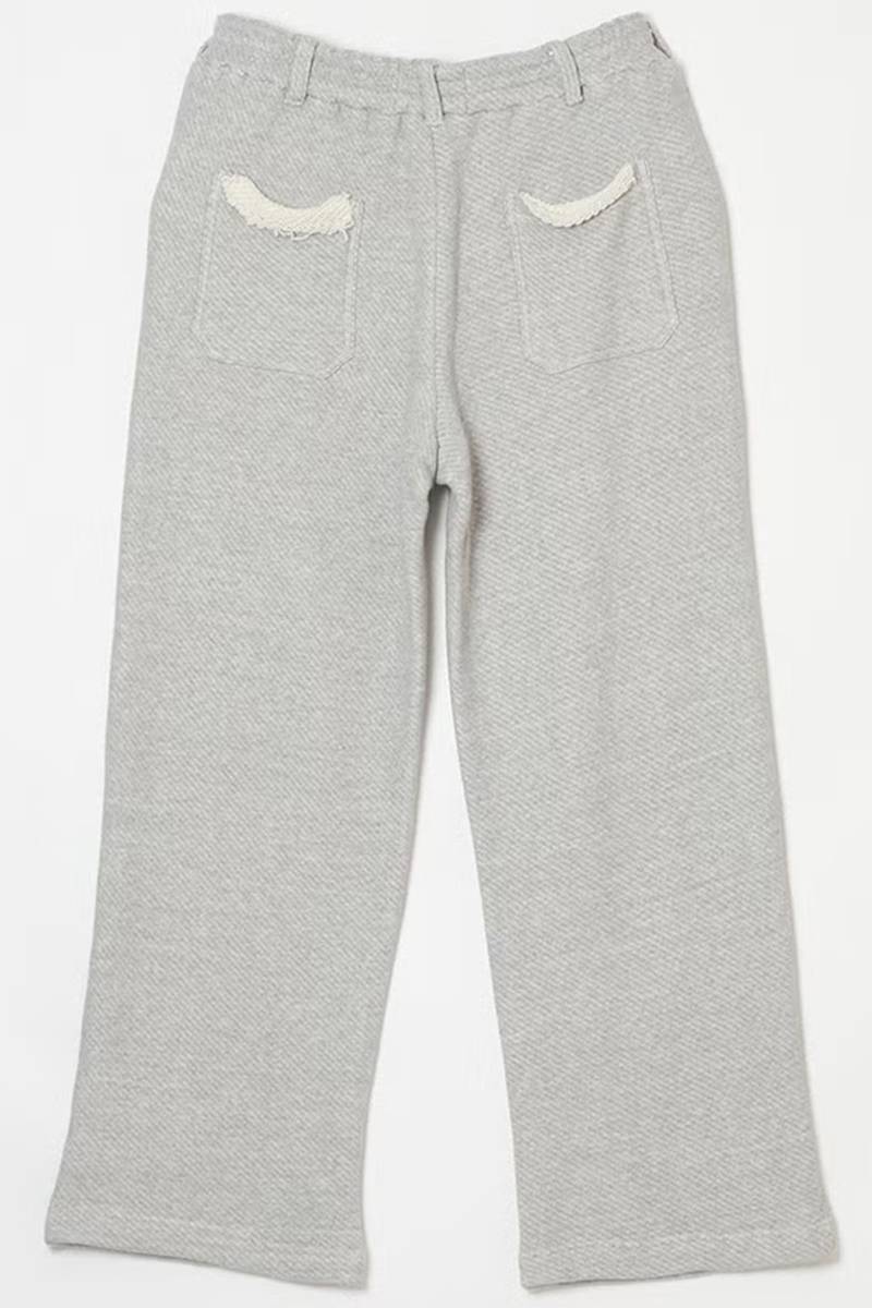 吊り裏毛のような太い糸を使用し、柔らかさとふくらみのある風合いを持たせたワイドパンツ。